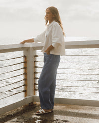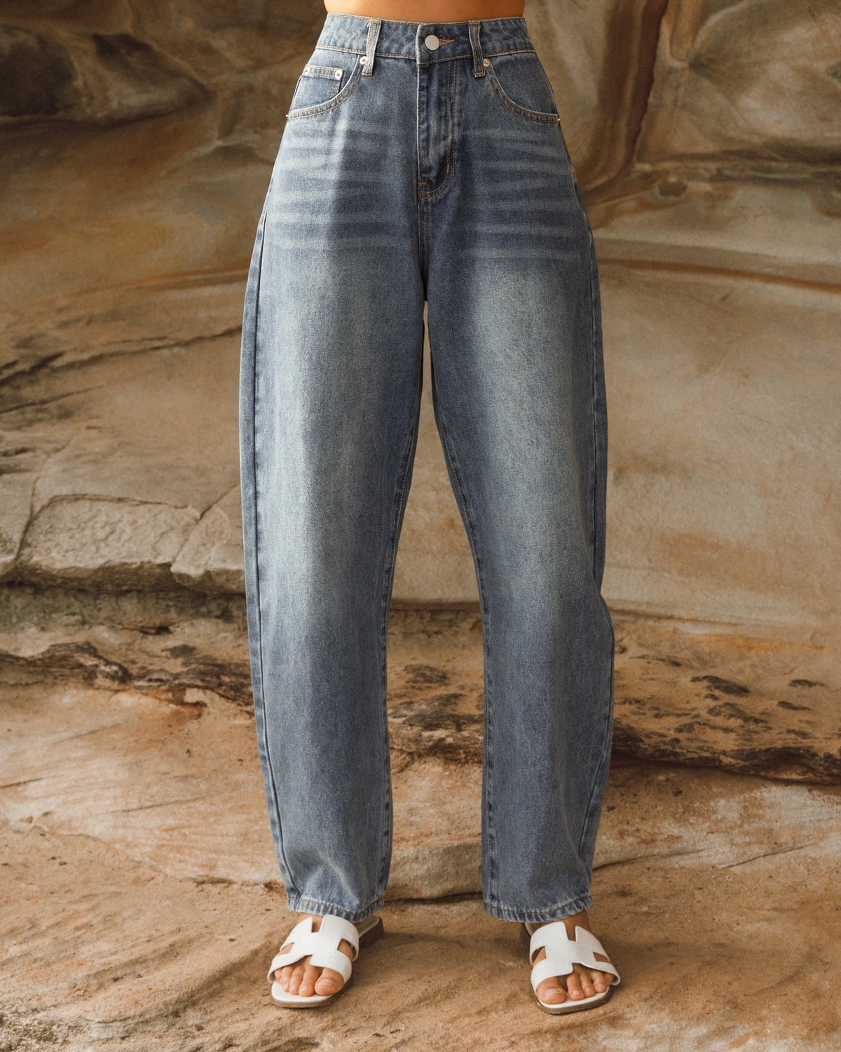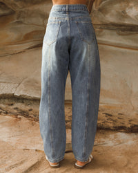 ∙ VV11825 ∙ Denim ∙ 8:10:12:14:16=2:2:2:1:1 ∙ High waist ∙ Front and back pockets ∙ Zip fly front with button closure ∙ Barrel shape leg design ∙ Full length ∙ Relaxed fit ∙ Our model is wearing size 8