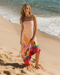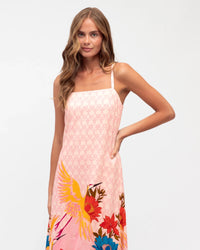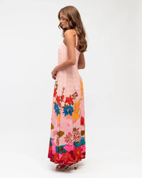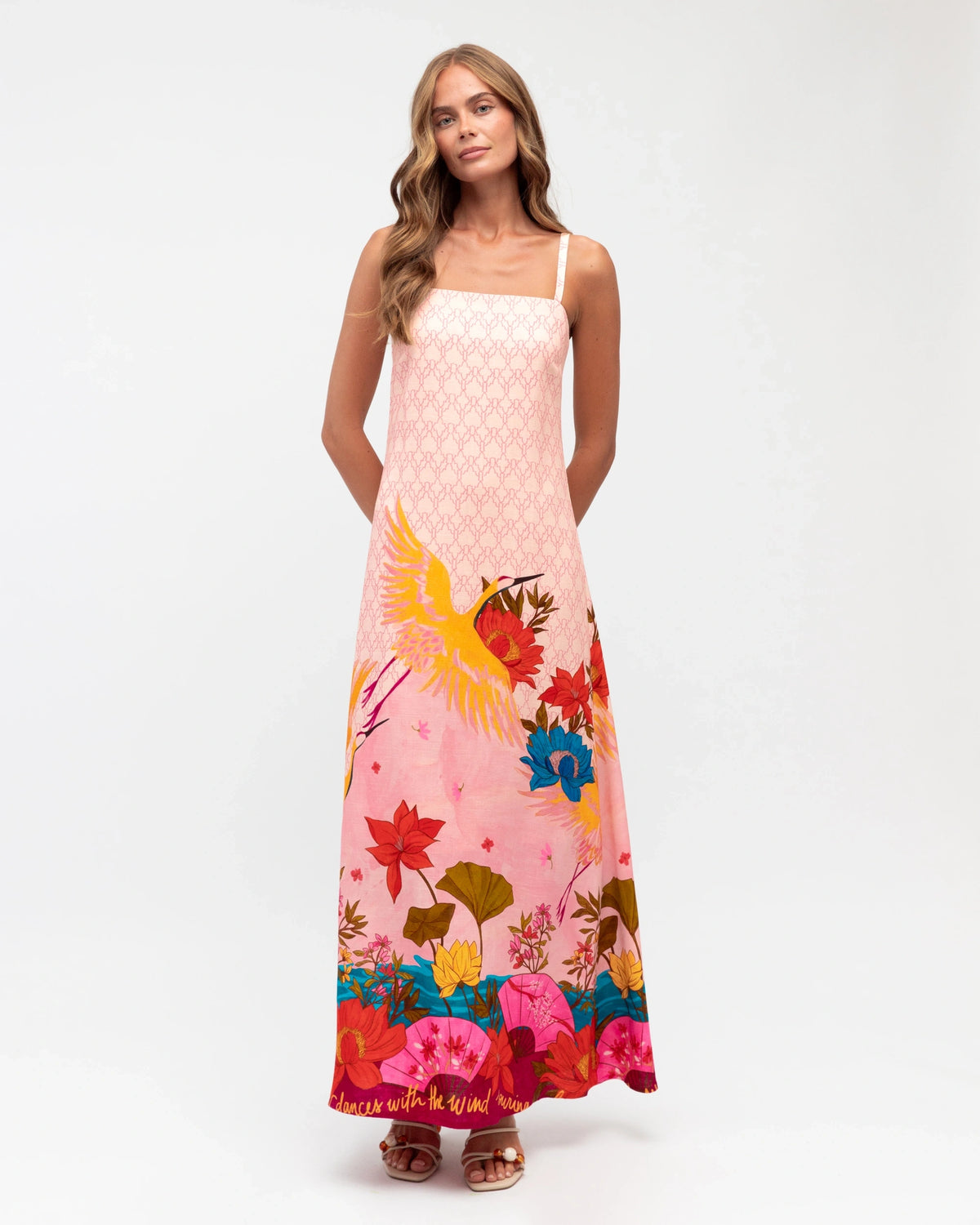 ∙ VVNE11787∙ Rayon/Linen∙ 8:10:12:14:16=2:2:2:1:1∙ Exclusive print∙ Square neckline∙ Chunky adjustable straps detail∙ Sleeveless∙ CB zipper detail∙ Shirred bodice∙ Maxi length∙ Relaxed fit∙ Our model is wearing size 8