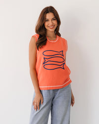 ∙ LOL71031∙ 100% Cotton∙ S:M:L:XL=2:2:2:2∙ Crew neckline∙ Sleeveless∙ Ribbed trims∙ Contrasting white stripe∙ Embroidered fish detail∙ Pull-on style∙ Regular fit∙ Our model is wearing size S