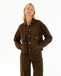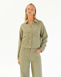 ∙ PH13974 ∙ 100% Cotton ∙ S:M:L=3:2:2 ∙ Collared neckline ∙ Long sleeves ∙ Button-through front ∙ Front flap pockets with button ∙ Cropped length ∙ Relaxed fit ∙ Our model is wearing size S
