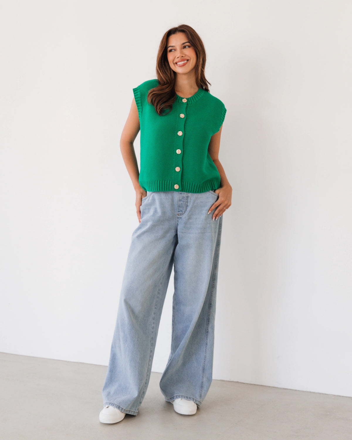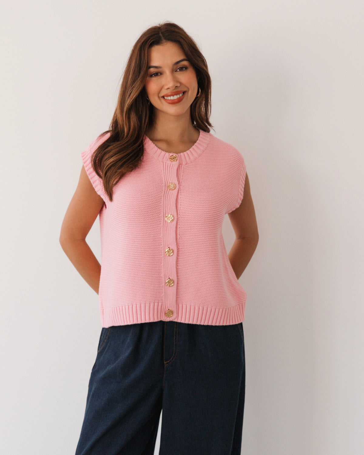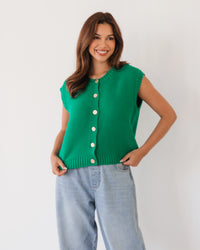 ∙ LOL71036∙ 100% Cotton∙ S:M:L:XL=2:2:2:2∙ Crew neckline∙ Sleeveless∙ Ribbing at neckline, armholes and hem∙ Waffle weave design∙ Gold buttons detail∙ Regular fit∙ Our model is wearing size S
