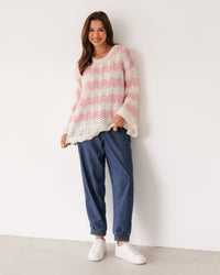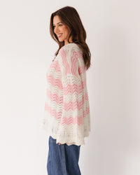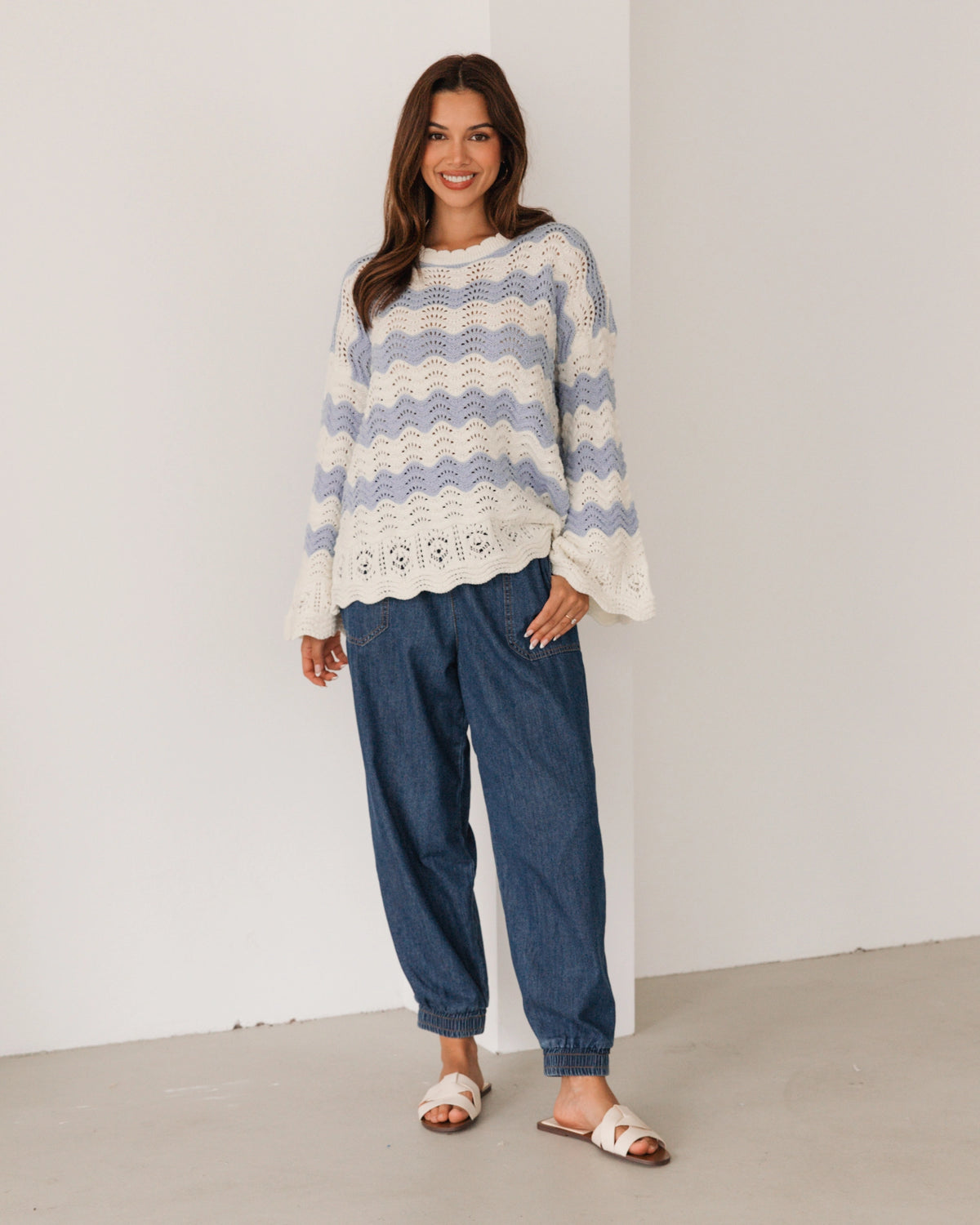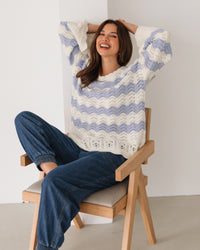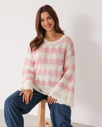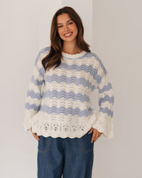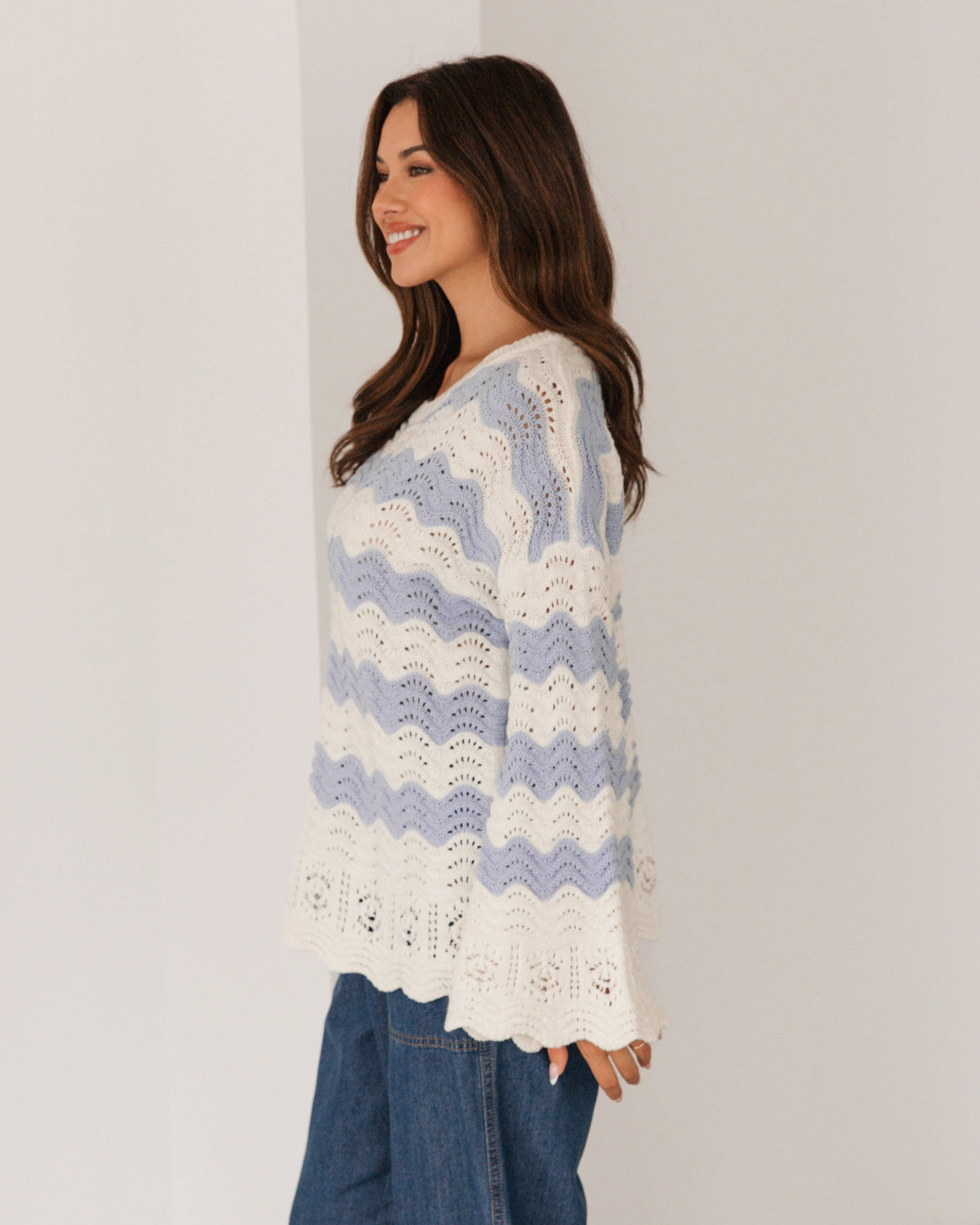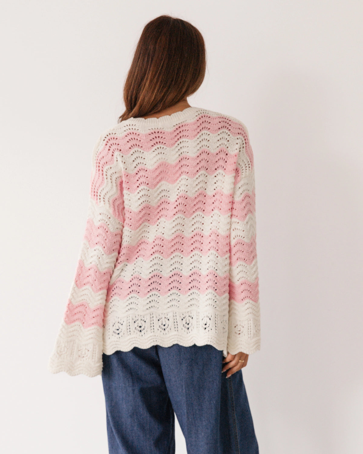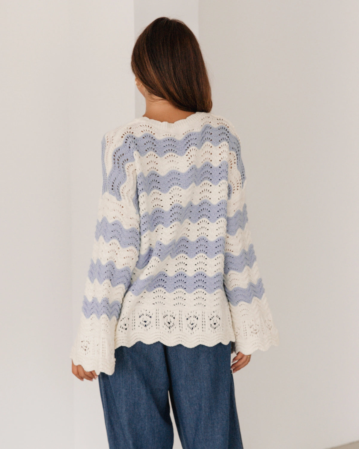 ∙ LOL22553 ∙ Acrylic ∙ S/M:M/L=4:4 ∙ Round neckline with scalloped ∙ Floaty long sleeve ∙ Scalloped at the cuffs and hem ∙ Crochet design ∙ Relaxed fit ∙ Our model is wearing size S