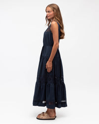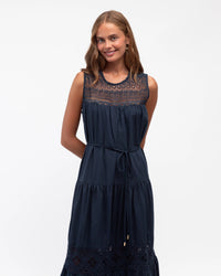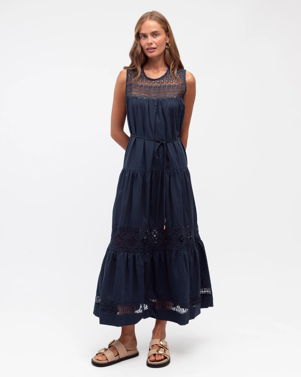 ∙ LOL70920 ∙ 100% Cotton ∙ S:M:L:XL=2:2:2:2 ∙ Crew neck ∙ Sleeveless ∙ Pull on style ∙ Shirring at back waist ∙ Keyhole detail ∙ Detachable belt design ∙ Lace trim details ∙ Maxi length ∙ Relaxed fit ∙ Our model is wearing size S