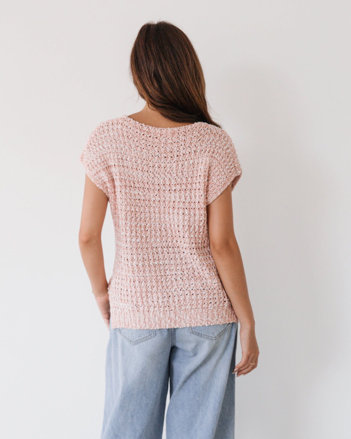 ∙ LOL22533∙ Acrylic∙ S:M:L:XL=2:2:2:2∙ Scoop neckline∙ Short sleeve∙ Crochet knit design∙ Relaxed fit∙ Our model is wearing size S