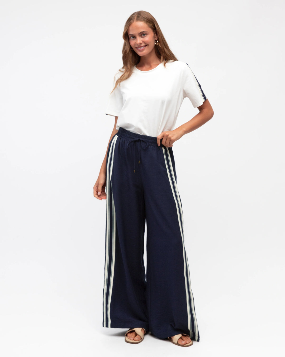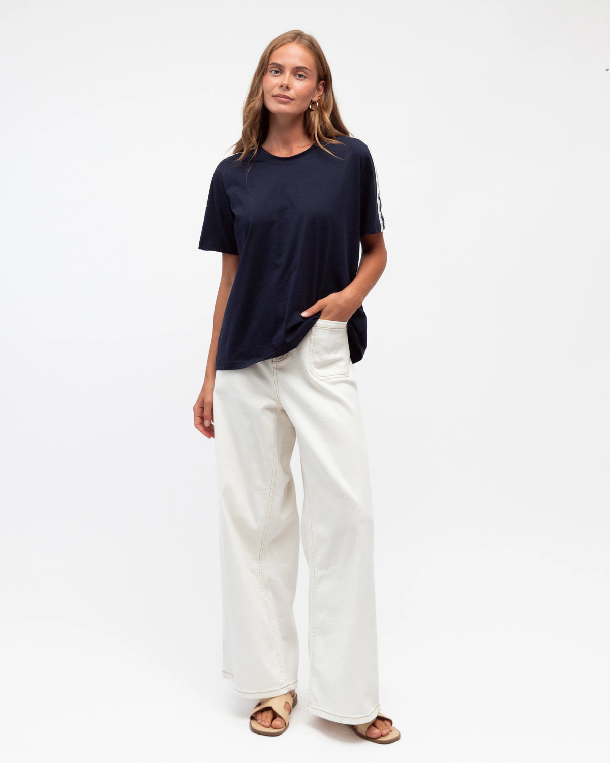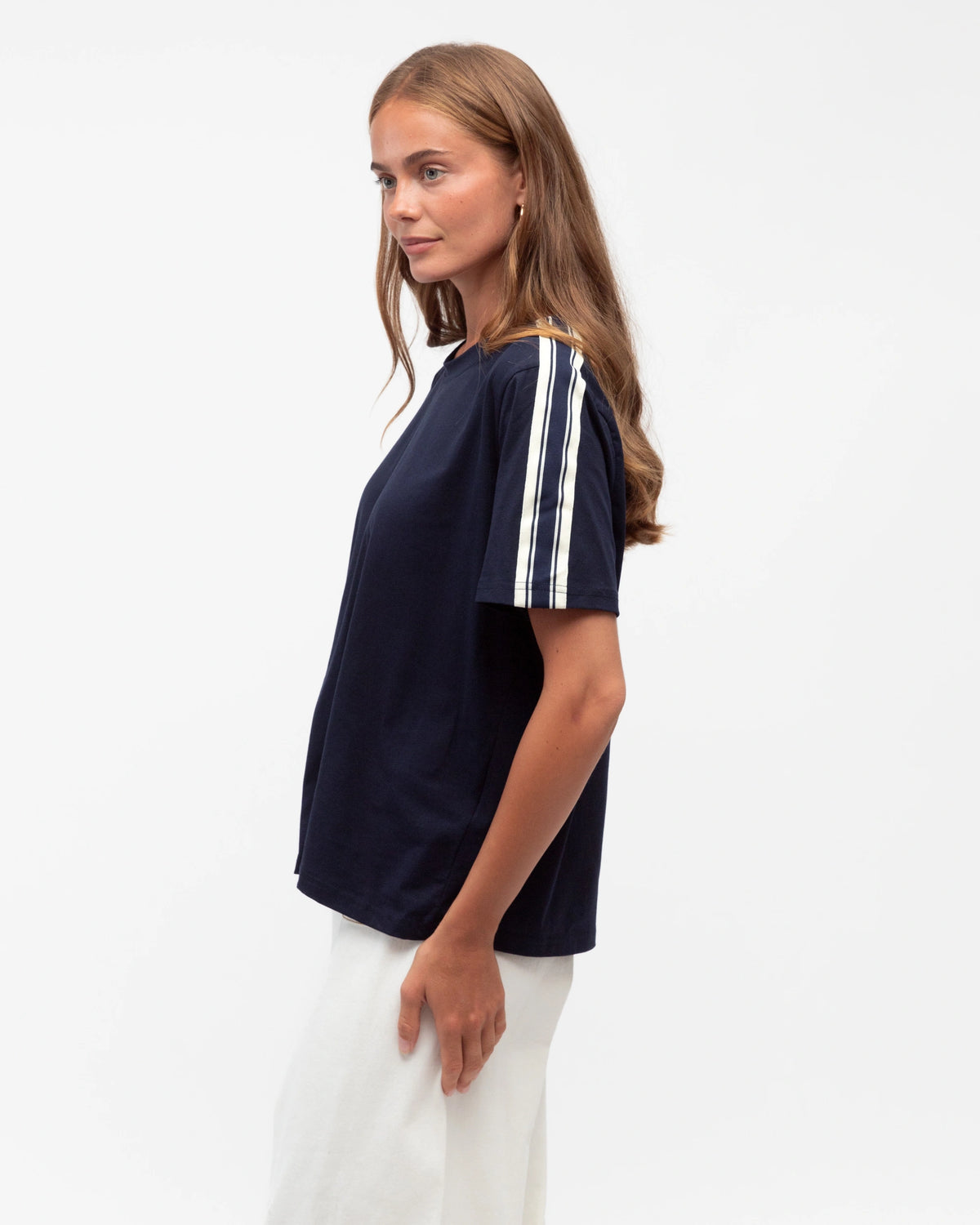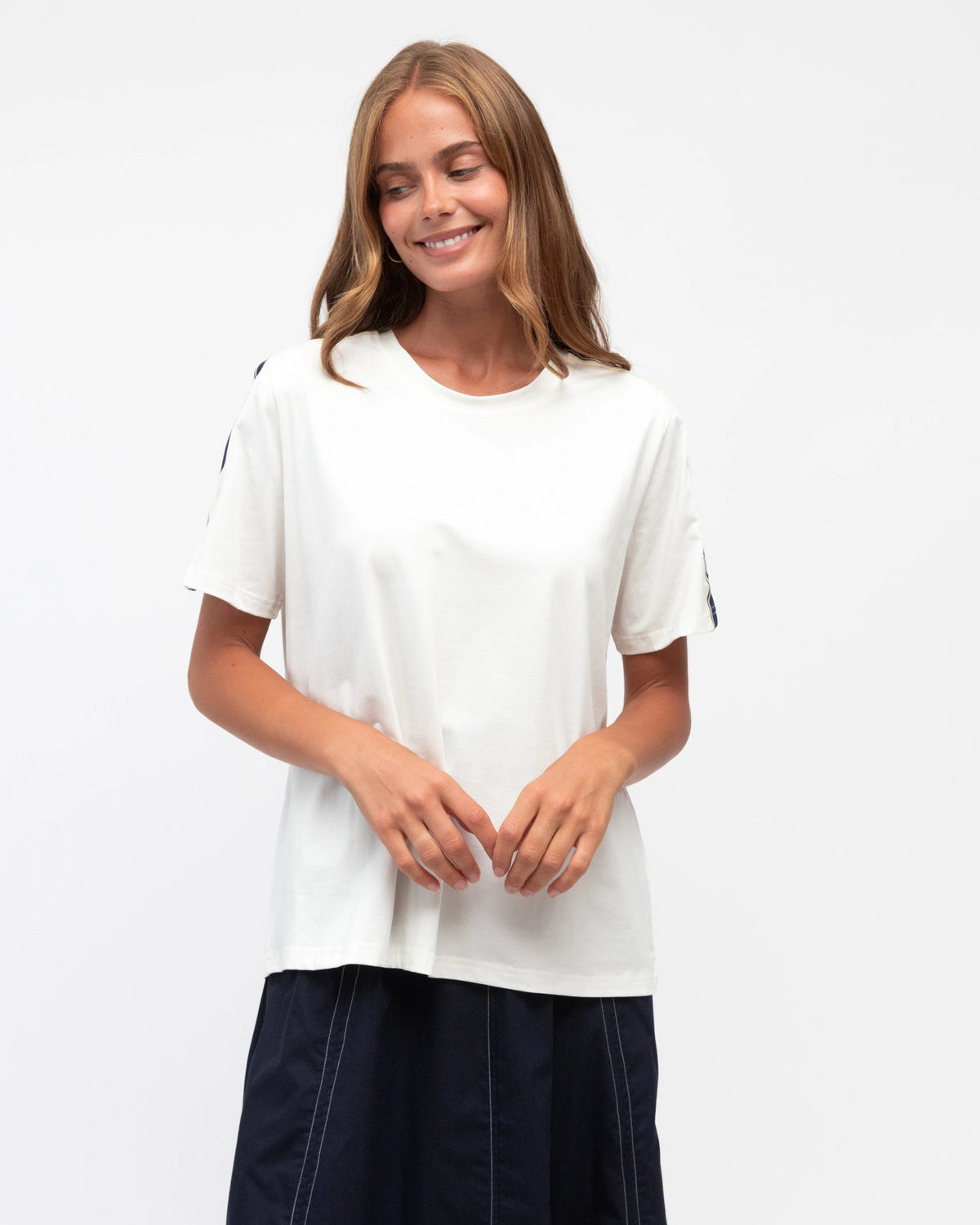 ∙ LOL70927∙ 100% Cotton∙ S:M:L:XL=2:2:2:2∙ Crew neck∙ Short sleeves∙ Wide striped tape design∙ Hip length∙ Regular fit∙ Our model is wearing size S