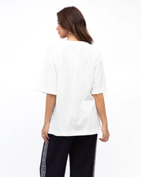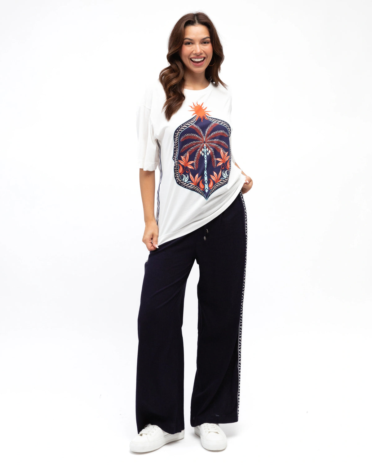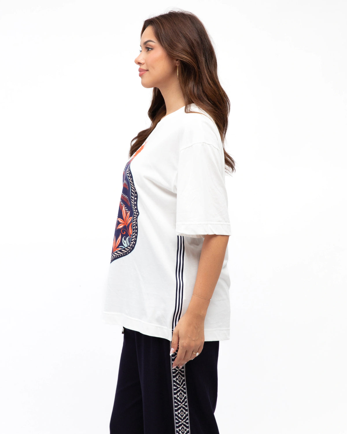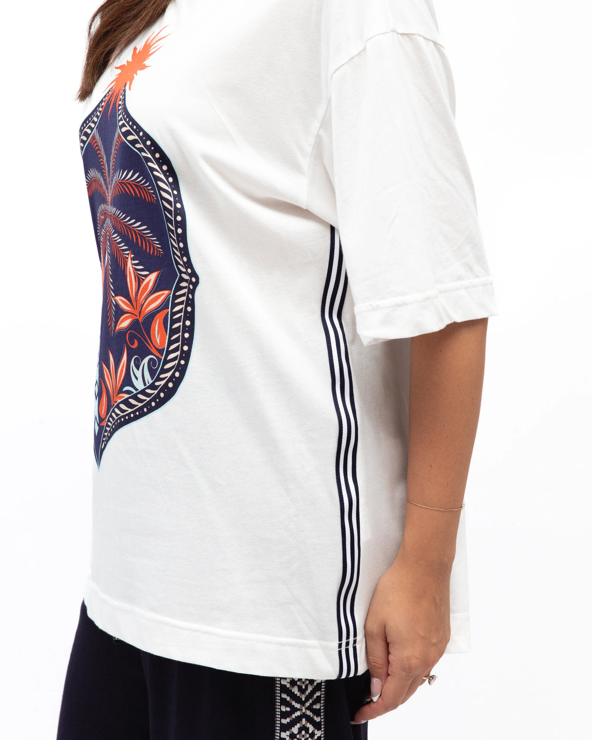 ∙ LOLE71120∙ 100% Cotton∙ S:M:L:XL=2:2:2:2∙ Exclusive print∙ Round neck∙ Short sleeves∙ Side stripes design∙ Straight hemline∙ Hip length∙ Oversized fit∙ Our model is wearing size S