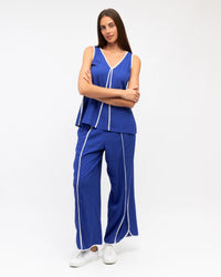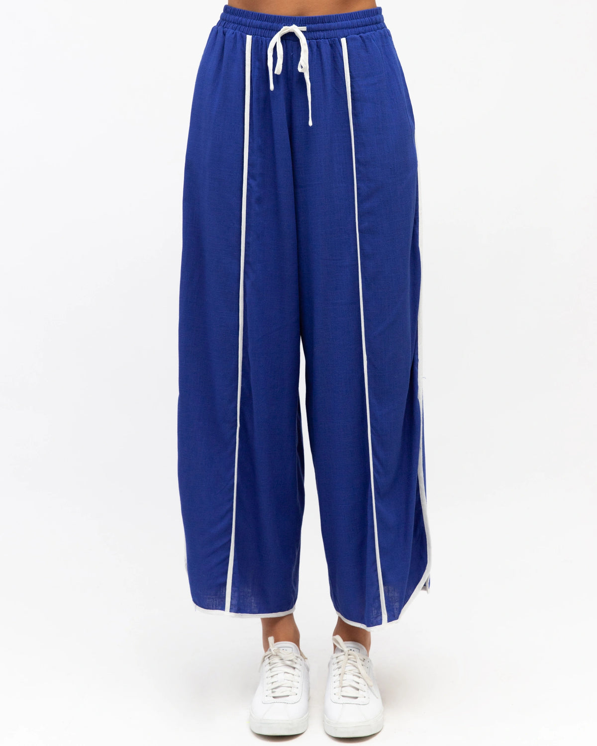 ∙ LOL70230-1∙ Rayon/Linen∙ S:M:L:XL=2:2:2:2∙ Elasticated waistband∙ Contrast piping∙ Wide leg fit∙ Full length∙ Our model is wearing size S