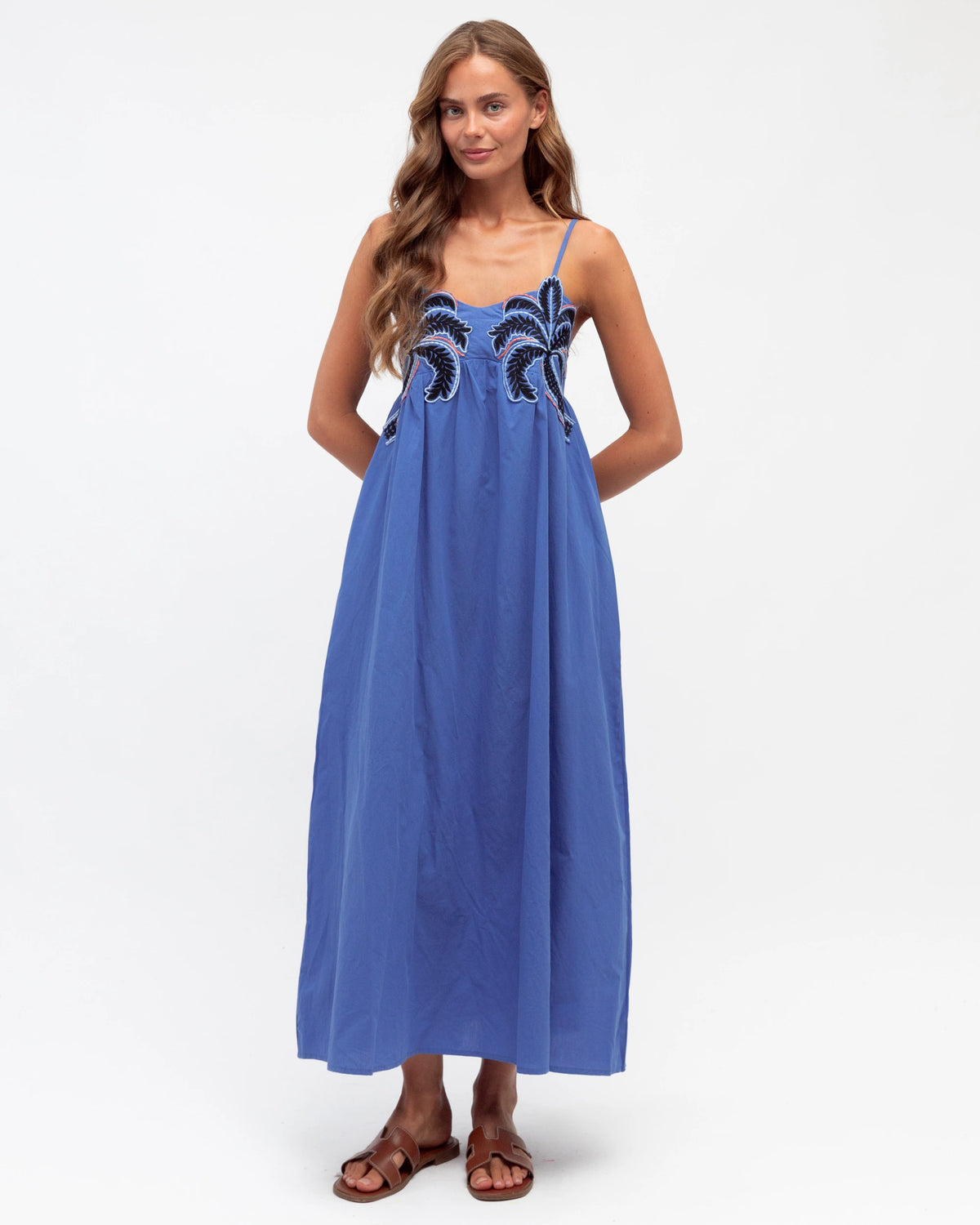 ∙ LOL70895-1∙ 100% Cotton∙ S:M:L:XL=2:2:2:2∙ V neckline∙ Sleeveless∙ Coconut tree embroidery design∙ Adjustable straps∙ Back elasticated shirred bodice∙ Maxi length∙ Relaxed fit∙ Our model is wearing size S