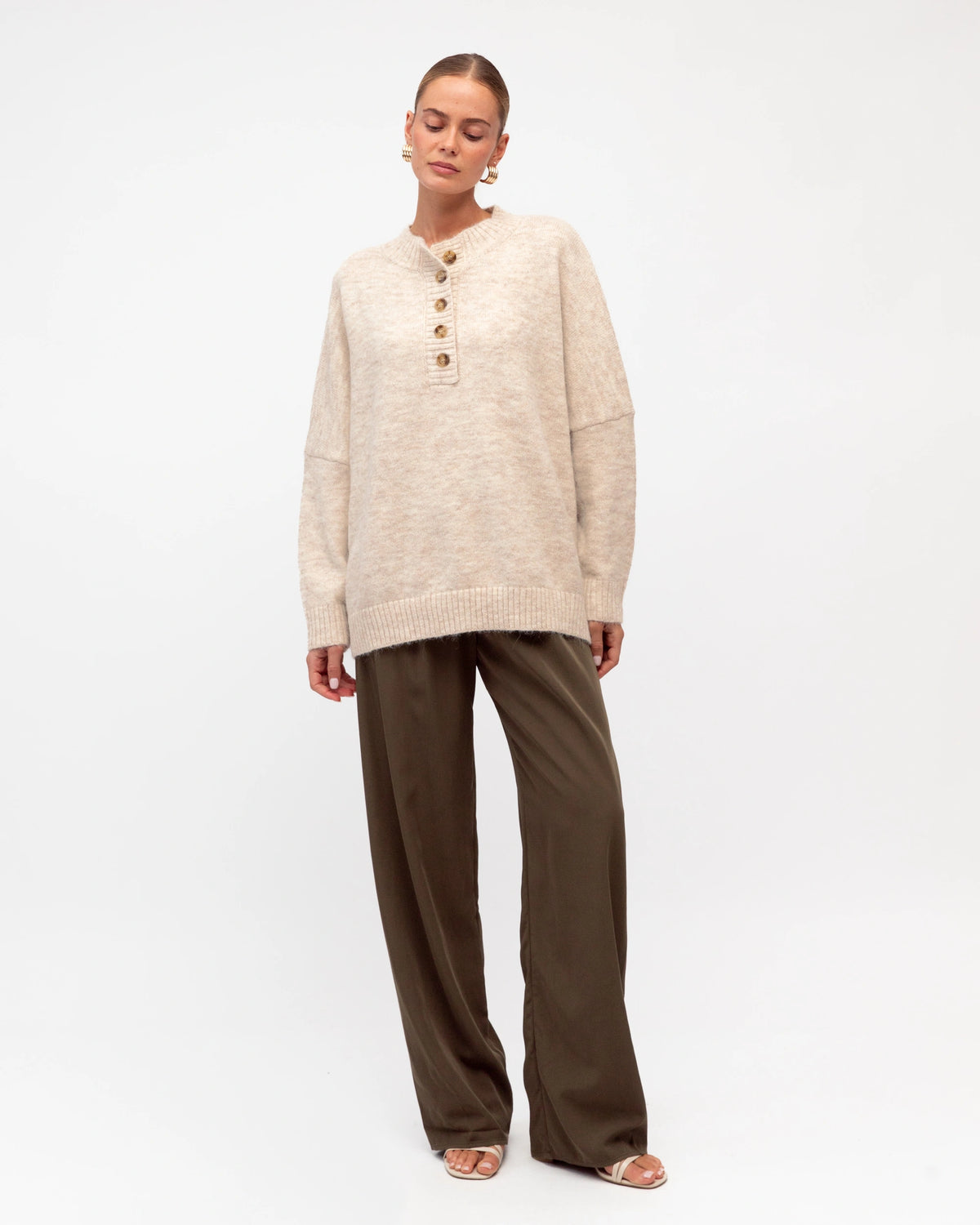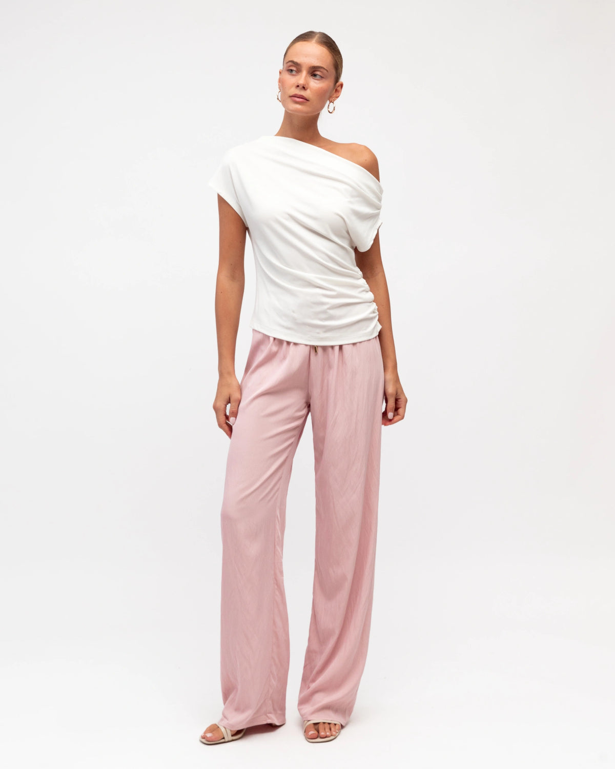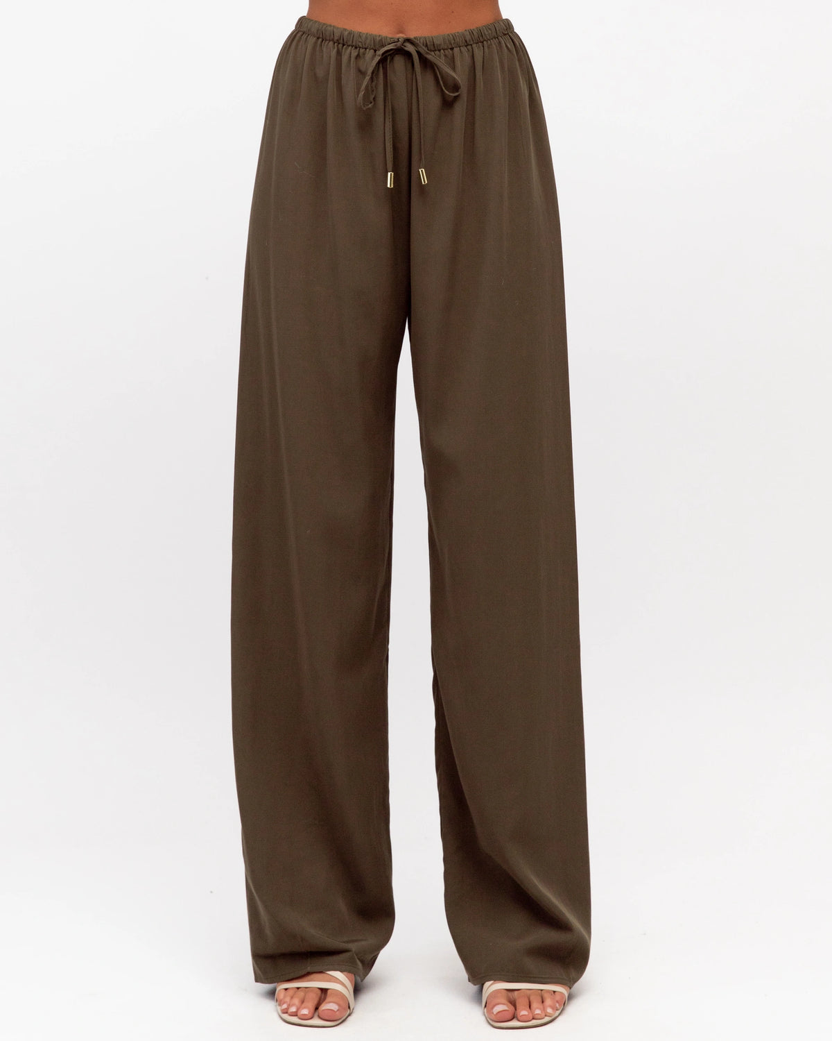 ∙ TF11758 ∙ Cotton ∙ 6:8:10:12:14=1:2:2:2:1 ∙ High waisted ∙ Elastic drawstring waistband ∙ Wide leg ∙ Full length ∙ Regular fit ∙ Our model is wearing size 8