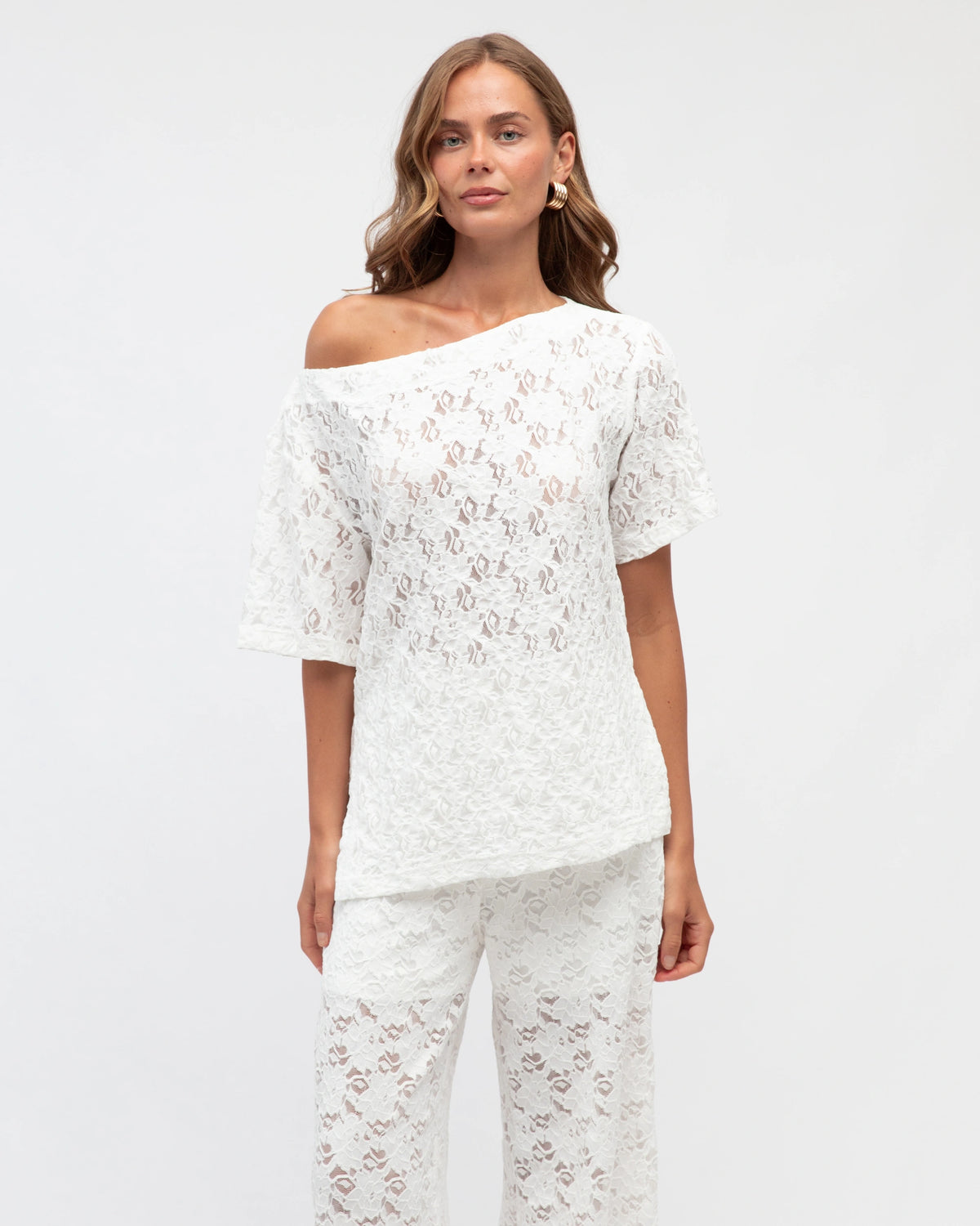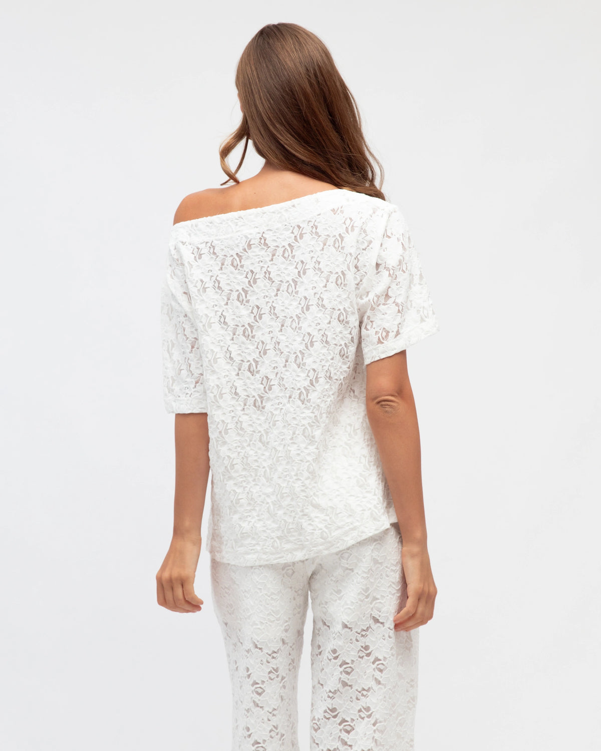 ∙ TF10936-2 ∙ Nylon ∙ 6:8:10:12:14=1:2:2:2:1 ∙ Off shoulder neckline ∙ Asymmetric short sleeve ∙ Splits hemline at side seams ∙ Hip length ∙ Relaxed fit ∙ Our model is wearing size 8
