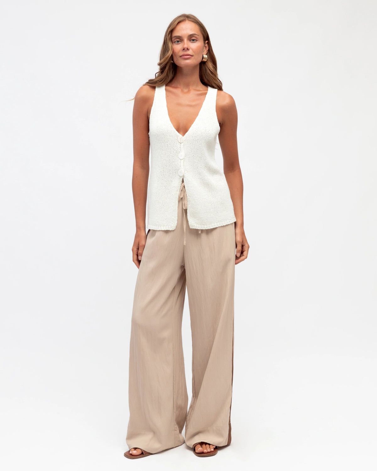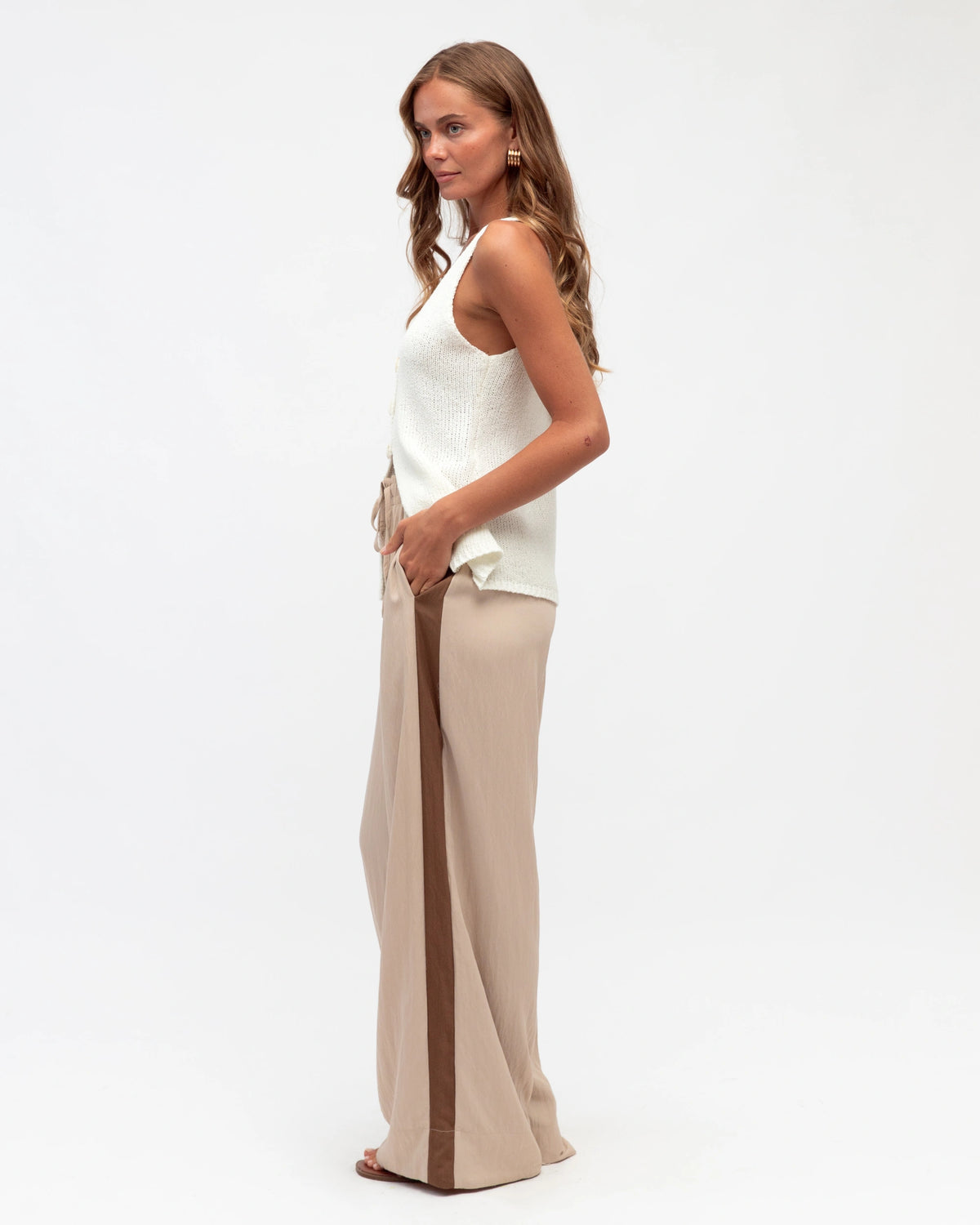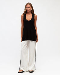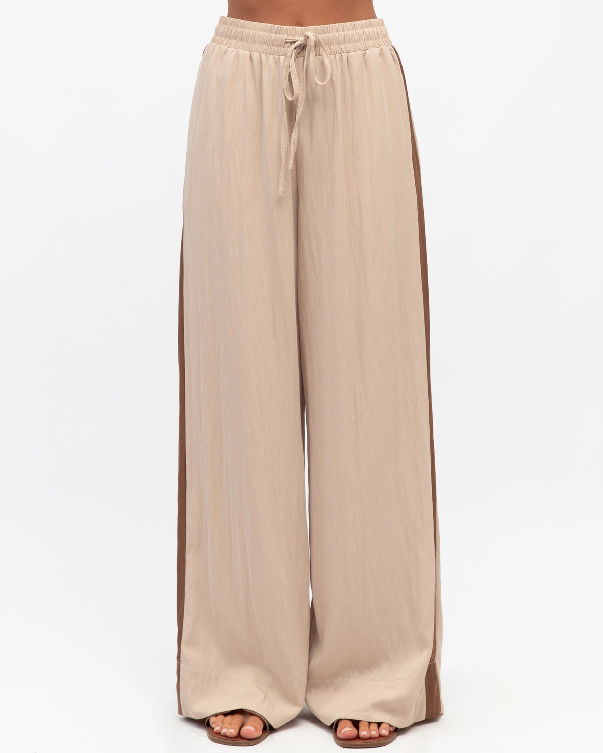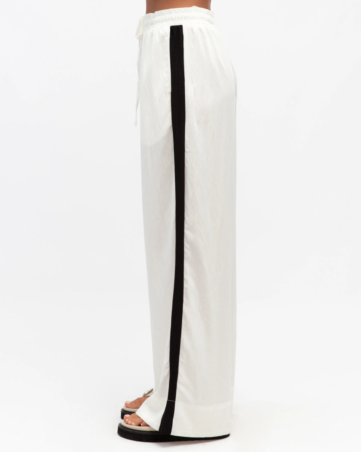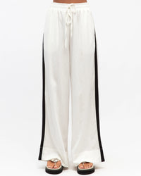∙ TF11341 ∙ Rayon ∙ 6:8:10:12:14=1:2:2:2:1 ∙ High waisted ∙ Side contrast stripe design ∙ Elasticised waist with tie ∙ Wide leg silhouette ∙ Relaxed fit ∙ Our model is wearing size 8