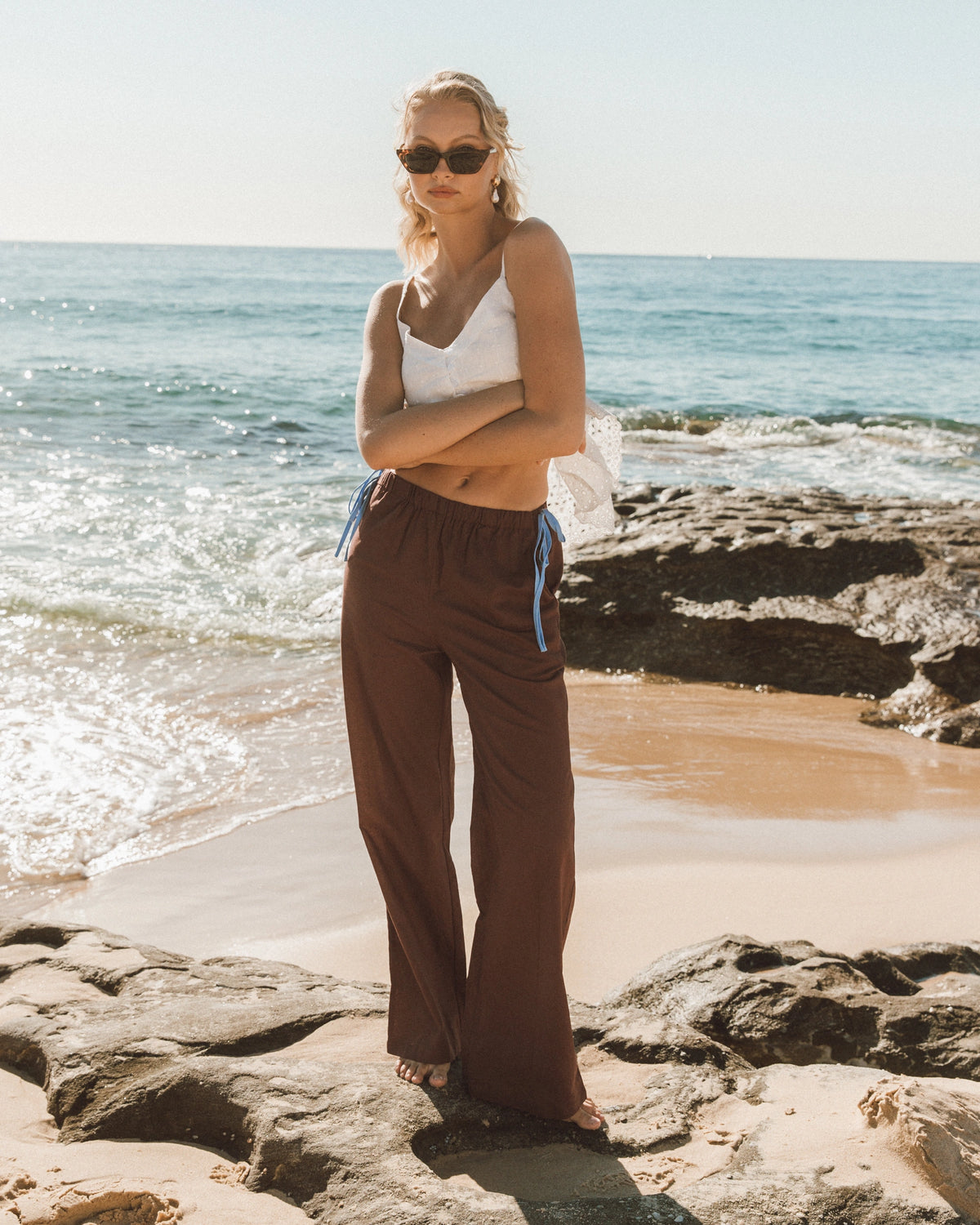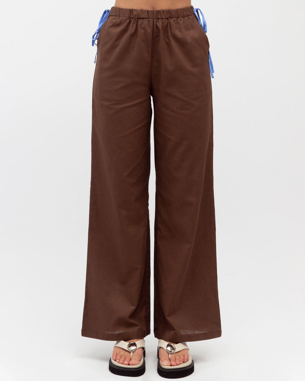 ∙ PH13957 ∙ Cotton ∙ 6:8:10:12:14=1:2:2:2:1 ∙ High rise ∙ Elasticated waist ∙ Sides contrast tie detail ∙ Side pockets ∙ Wide leg silhouette ∙ Full length ∙ Regular fit ∙ Our model is wearing size 8