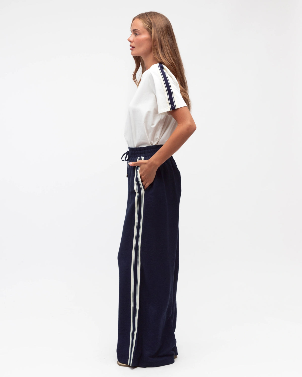 ∙ LOL70928 ∙ Rayon ∙ S:M:L:XL=2:2:2:2 ∙ Elasticated waist with tie ∙ Stripe details ∙ Straight leg ∙ Side pockets ∙ Side stripe detail ∙ Regular fit ∙ Our model is wearing size S