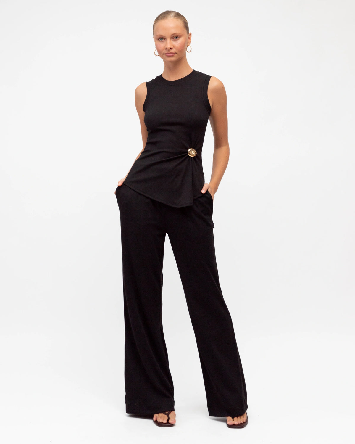 ∙ TF11563-1 ∙ Polyester ∙ 6:8:10:12:14=1:2:2:2:1 ∙ High waisted ∙ Elasticated waist ∙ Wide leg silhouette ∙ Side pockets ∙ Pull on style ∙ Full length ∙ Regular fit ∙ Our model is wearing size 8