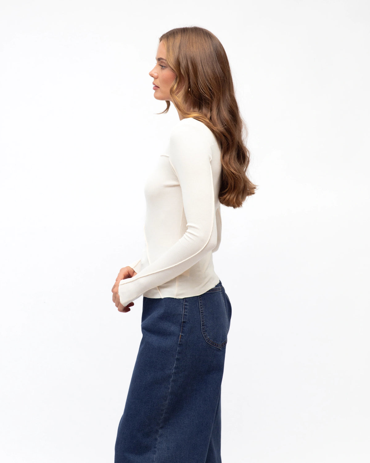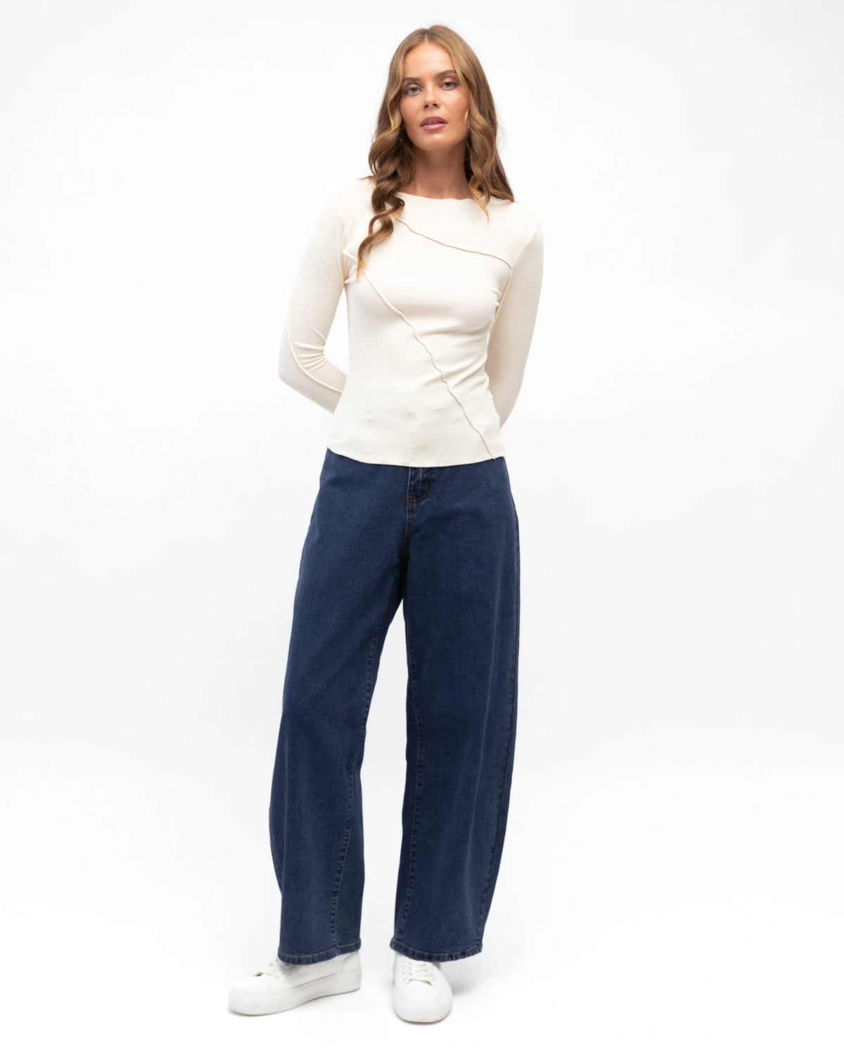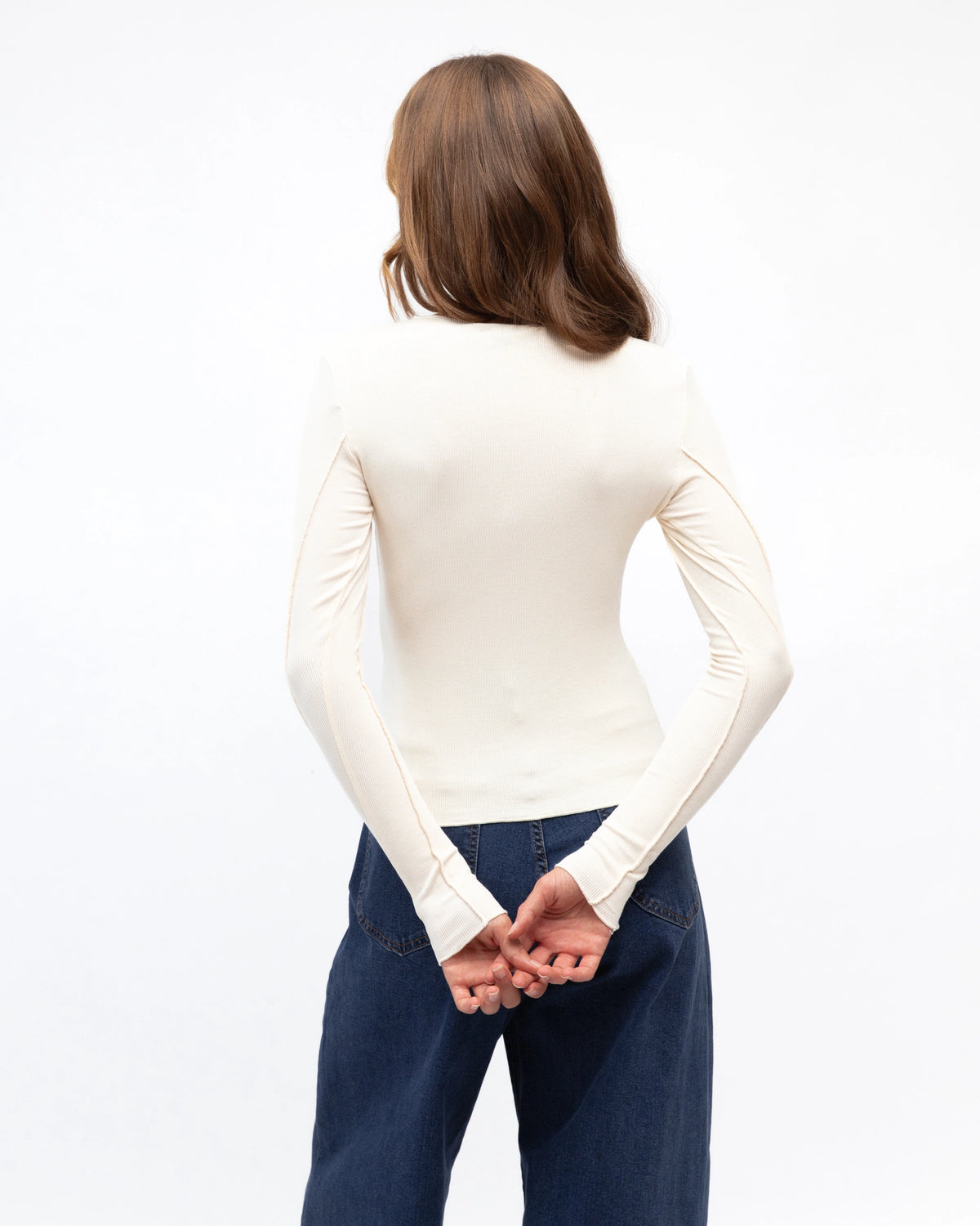 ∙ PH11155∙ Cotton∙ 6:8:10:12:14=1:2:2:2:1∙ Rounded neck∙ Decorative seams design∙ Long sleeve∙ Lettuce-edge trims design∙ Regular fit∙ Our model is wearing size 8