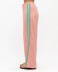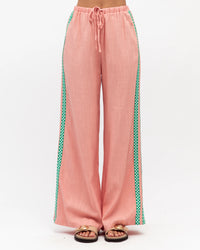 ∙ PH13391 ∙ Rayon/Linen ∙ 6:8:10:12:14=1:2:2:2:1 ∙ High waisted ∙ Elasticated waist with drawstring ∙ White and green checkered ribbon detail ∙ Straight leg ∙ Relaxed fit ∙ Our model is wearing size 8