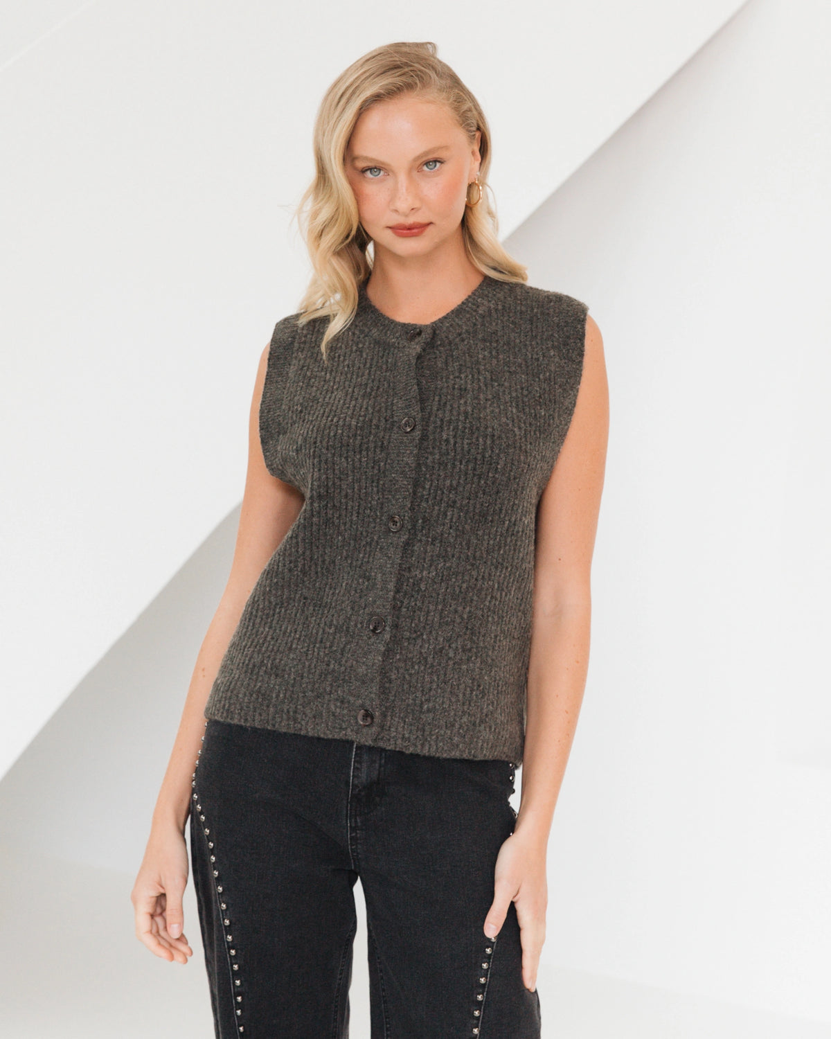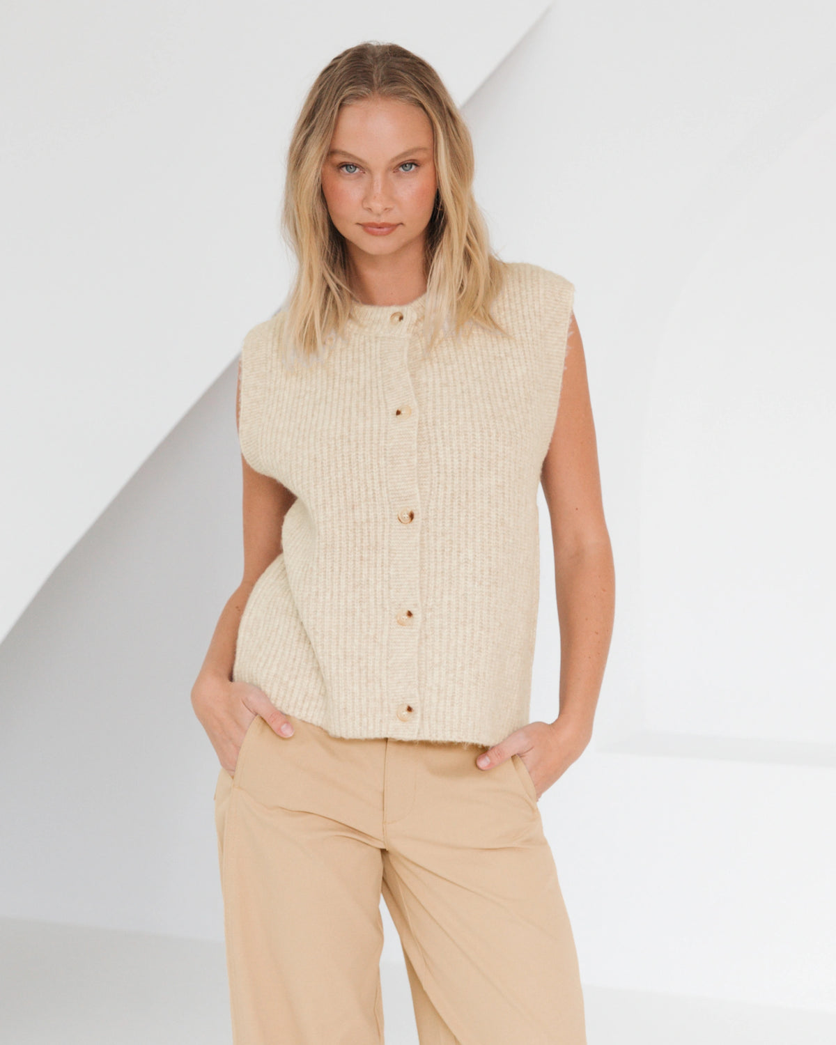 ∙ PH13995∙ Polyester∙ S:M:L=3:2:2∙ Crew neck∙ Sleeveless∙ Button placket∙ Ribbed neckline and armhole∙ Regular fit∙ Our model is wearing size S