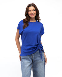∙ LOL70951 ∙ Cotton ∙ S:M:L:XL=2:2:2:2 ∙ Crew neck ∙ Short sleeve ∙ Ruched side detail with adjustable tie ∙ Hip length ∙ Relaxed fit ∙ Our model is wearing size S
