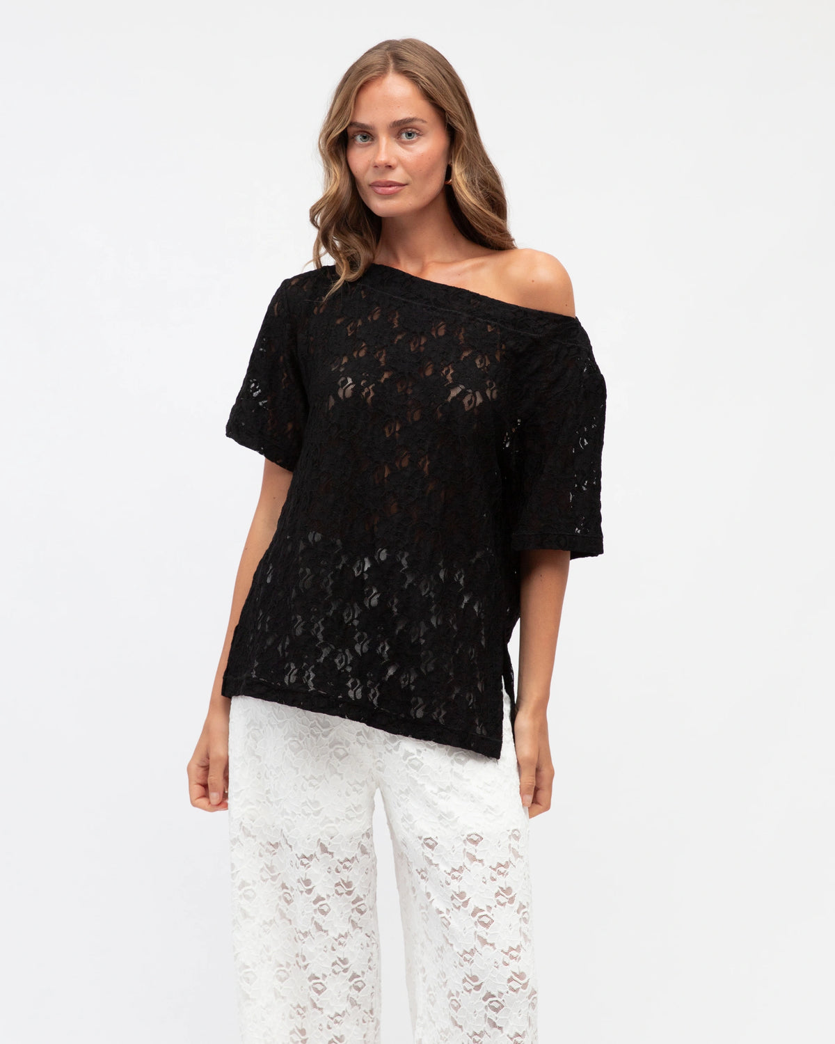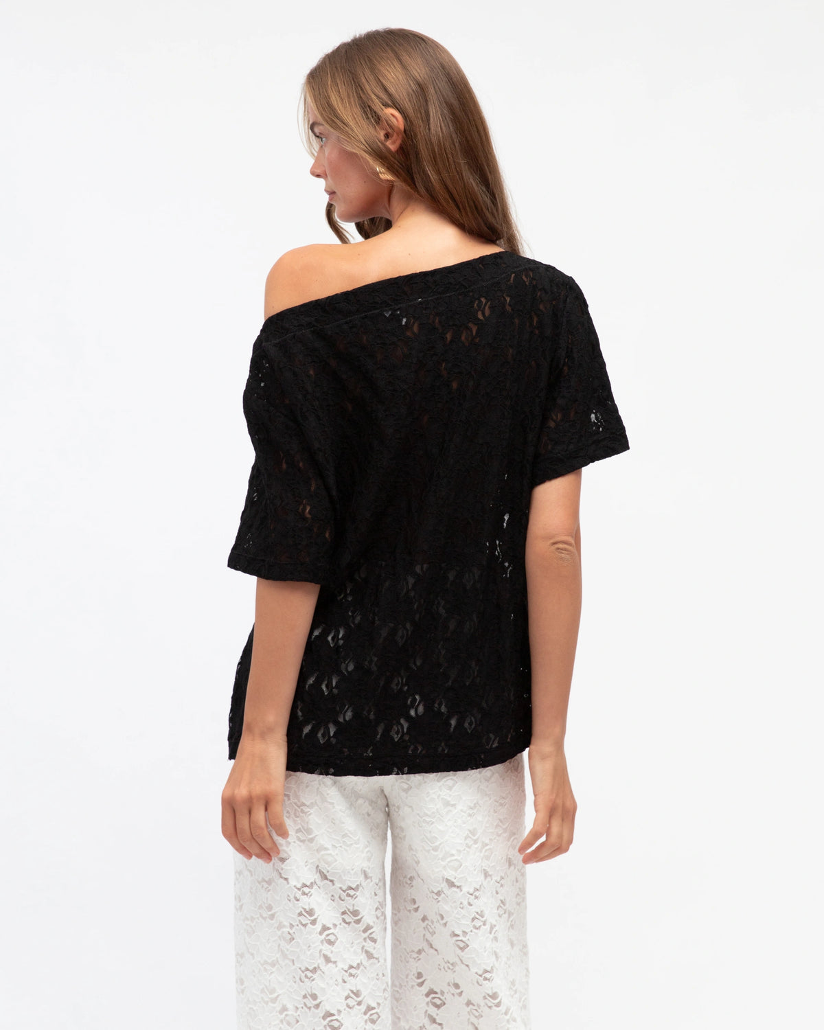 ∙ TF10936-2 ∙ Nylon ∙ 6:8:10:12:14=1:2:2:2:1 ∙ Off shoulder neckline ∙ Asymmetric short sleeve ∙ Splits hemline at side seams ∙ Hip length ∙ Relaxed fit ∙ Our model is wearing size 8