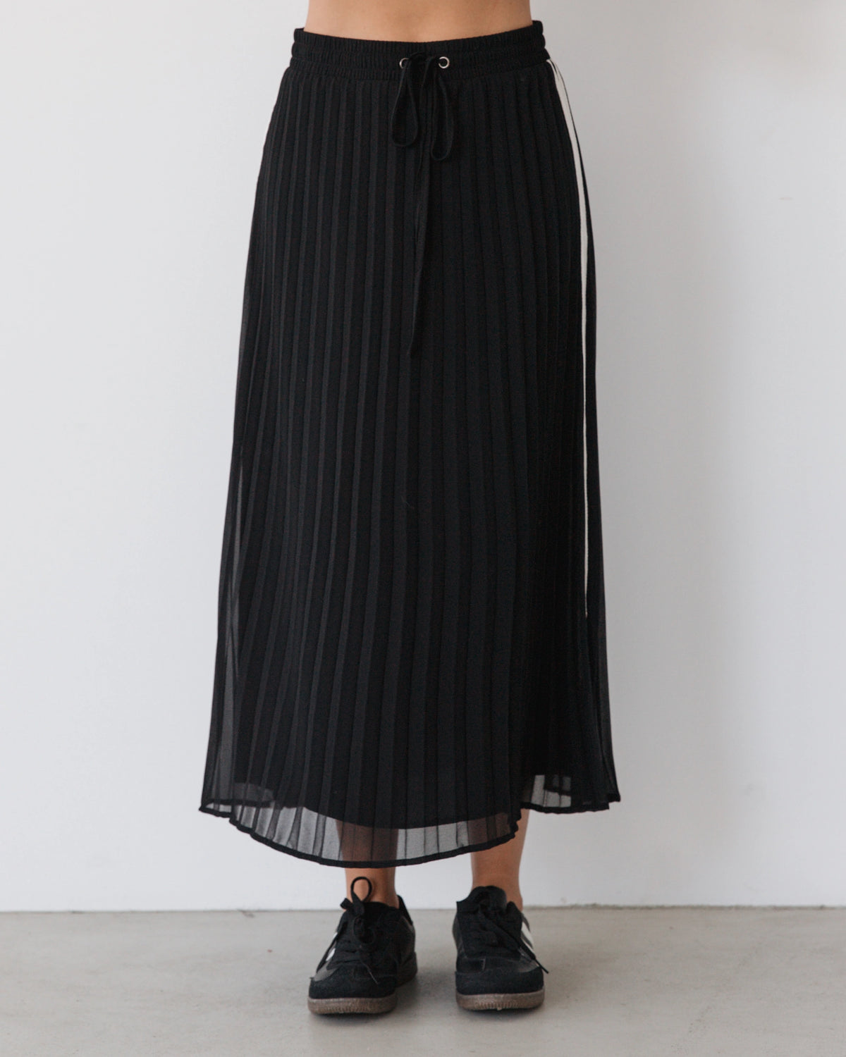 ∙ LOL70955 ∙ Polyester ∙ S:M:L:XL=2:2:2:2 ∙ Elasticised waist with tie-waist ∙ A-line silhouette ∙ Side stripe track ∙ Pleated design ∙ Full lined ∙ Relaxed fit ∙ Our model is wearing size S