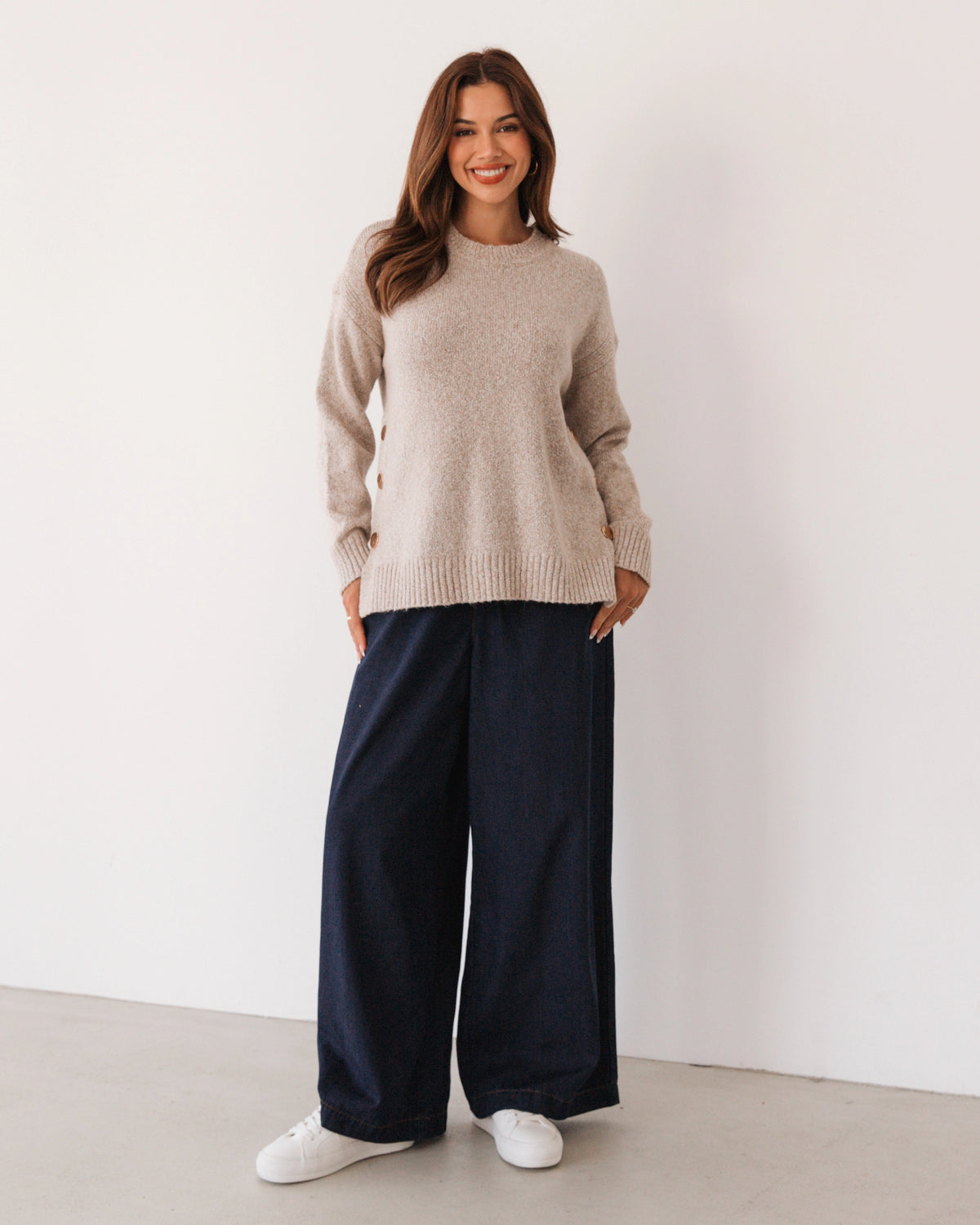∙ LOL70982 ∙ Cotton ∙ S:M:L:XL=2:2:2:2 ∙ Round neckline ∙ Long sleeves ∙ Side gold button detailing ∙ Ribbed neckband, cuffs and hem ∙ Regular fit ∙ Our model is wearing size S