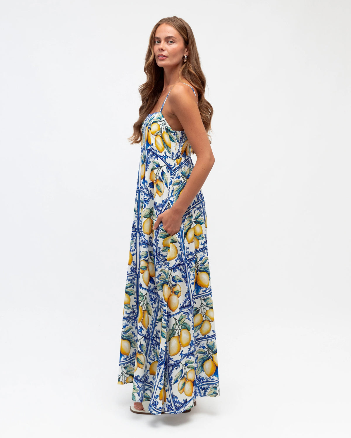 ∙ LOLE71000∙ Rayon∙ S:M:L:XL:XXL=2:2:2:2:1∙ Exclusive print∙ Square neckline∙ Sleeveless∙ Thin adjustable straps∙ Shirred back waist∙ Maxi length∙ Regular fit∙ Our model is wearing size S