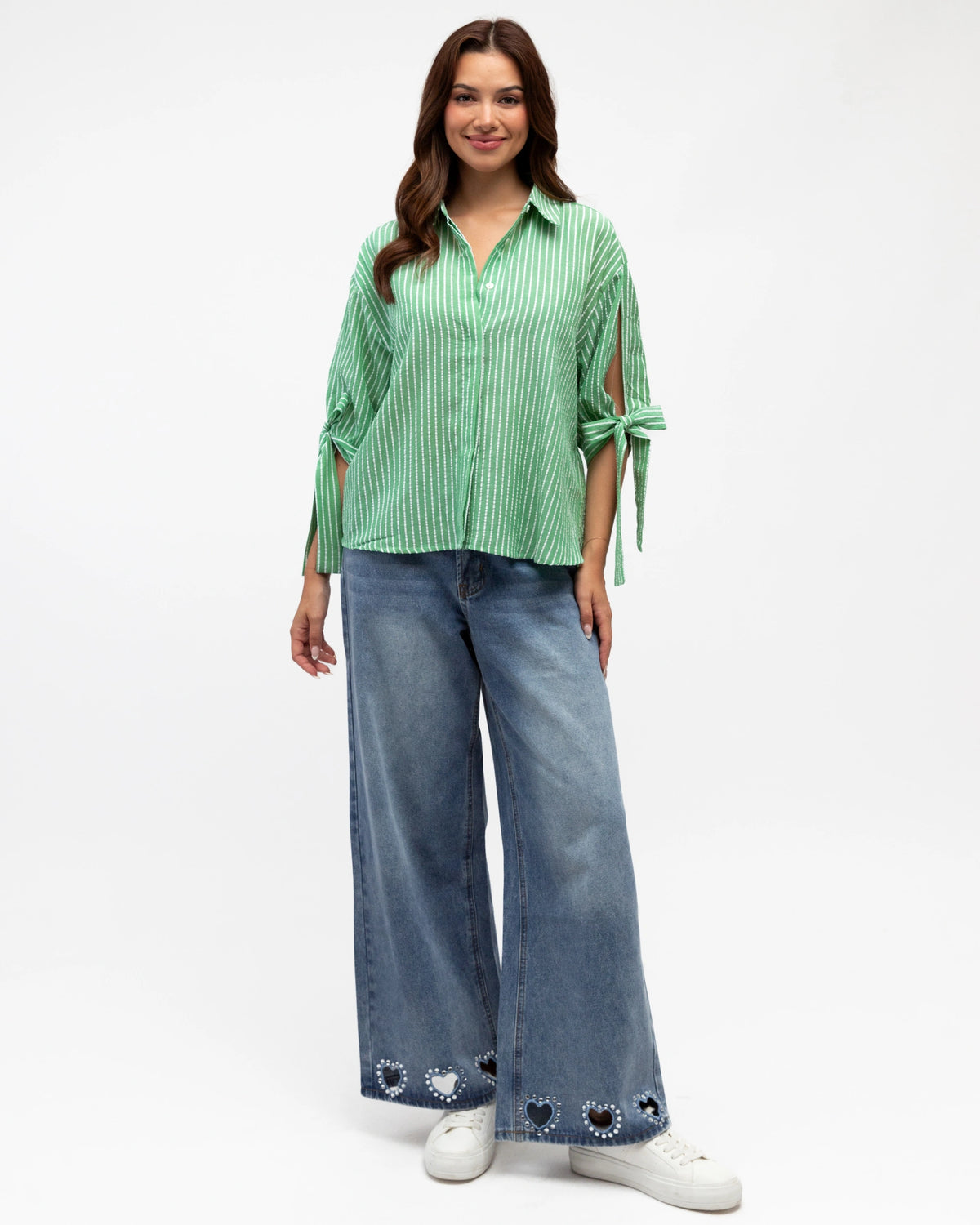 ∙ LOL71035 ∙ Polyester ∙ S:M:L:XL=2:2:2:2 ∙ Collar neckline ∙ Split long sleeves with tie closures ∙ Button through front ∙ Full length ∙ Relaxed fit ∙ Our model is wearing size S