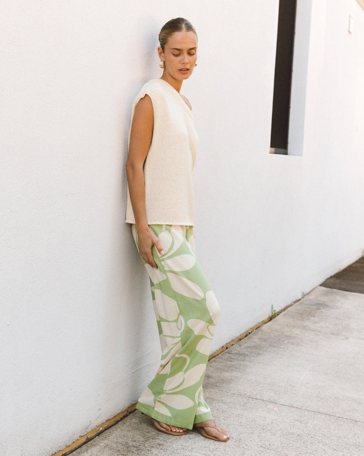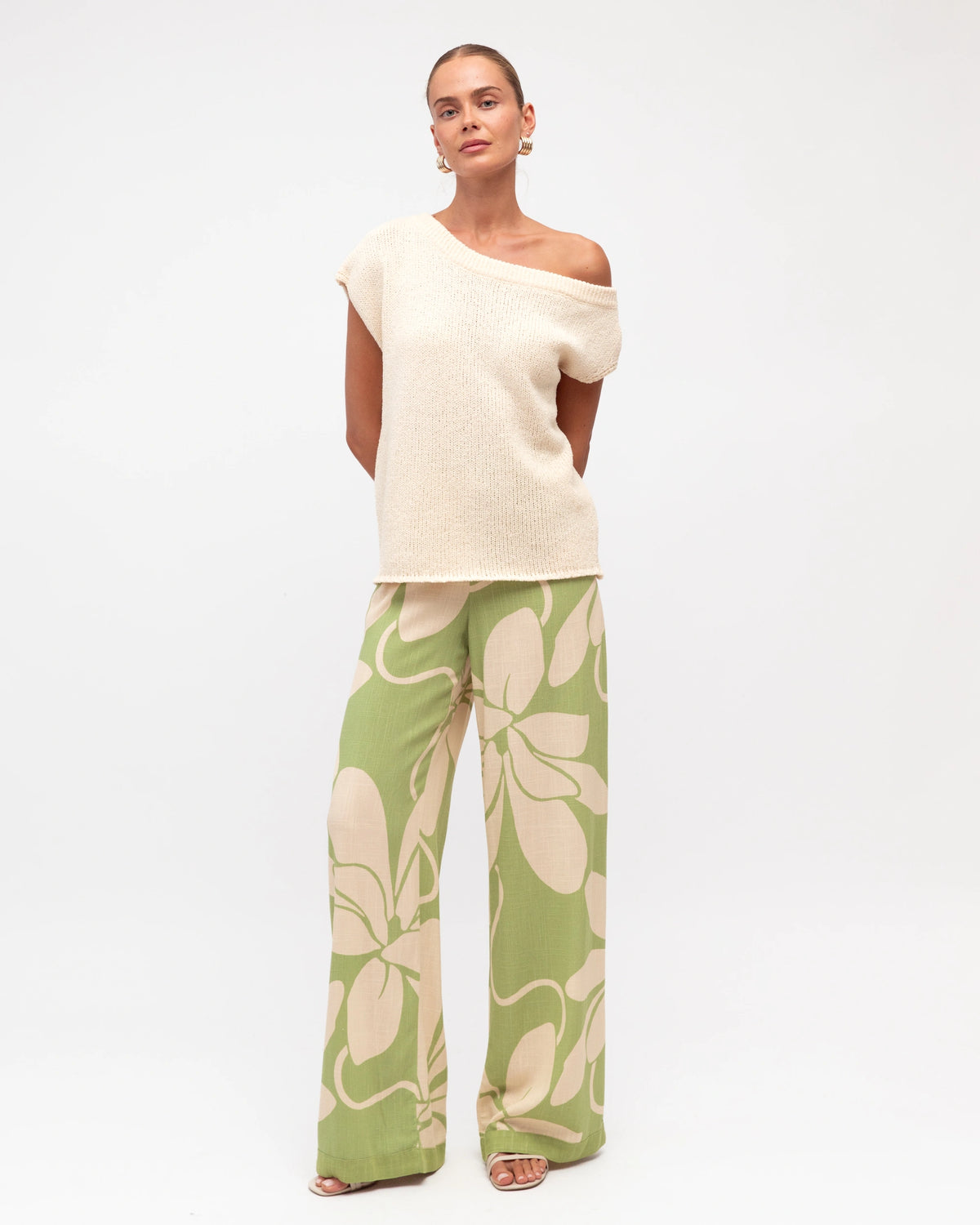 ∙ TFE11056-2 ∙ Rayon/Linen ∙ 6:8:10:12:14=1:2:2:2:1 ∙ Exclusive print ∙ High waisted ∙ Back pockets ∙ Zip at back ∙ Wide leg silhouette ∙ Full length ∙ Relaxed fit ∙ Our model is wearing size 8
