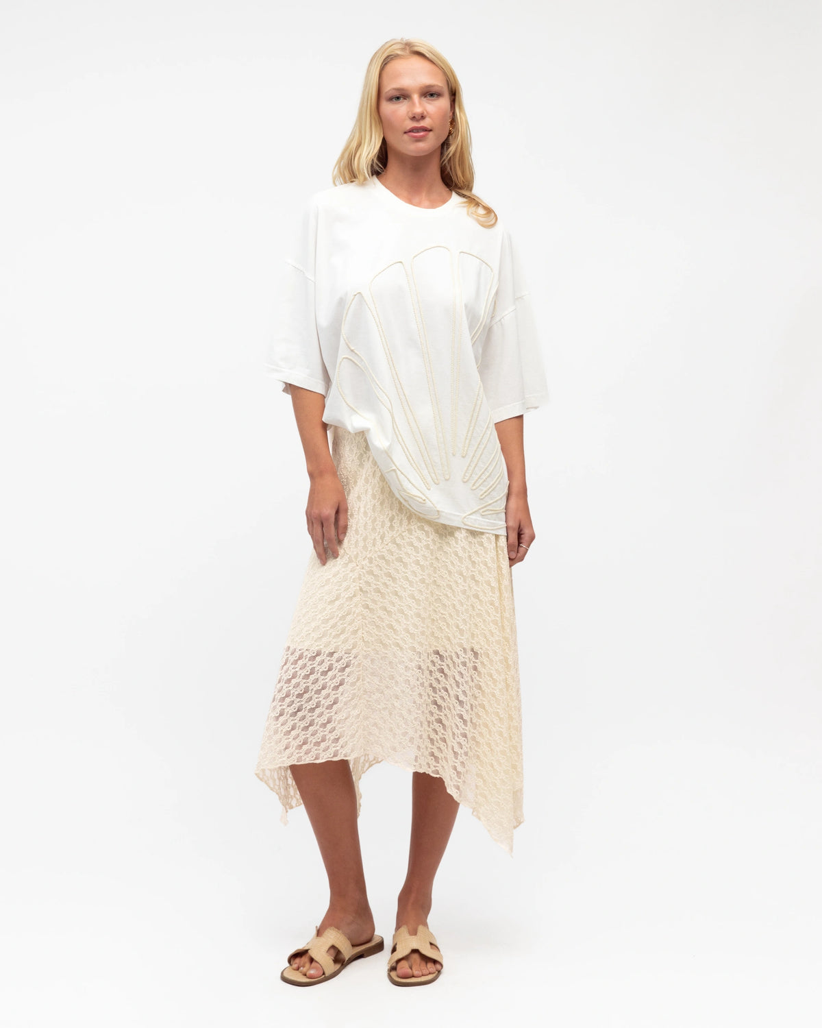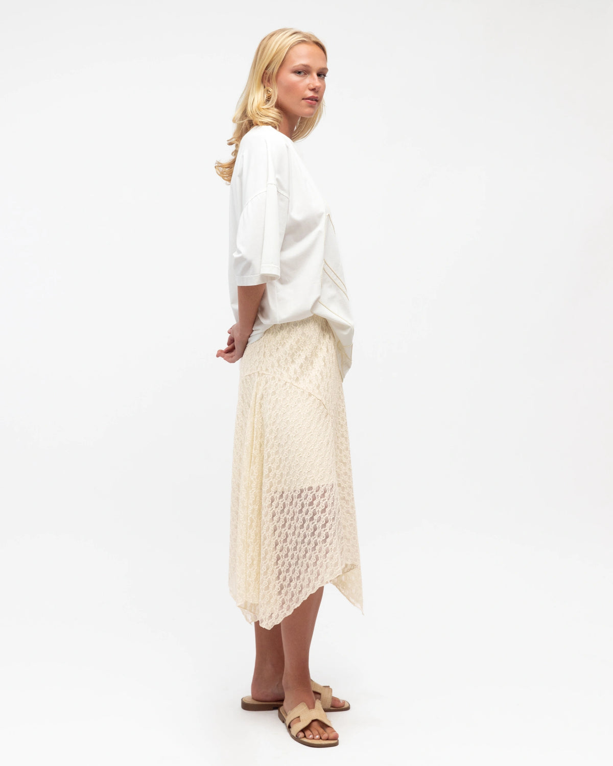 ∙ PH13953∙ Polyester∙ 6:8:10:12:14=1:2:2:2:1∙ Elasticated waistband∙ Low waisted∙ High and low hem design∙ Lace detailing∙ Partially lined∙ Midi length∙ Regular fit∙ Our model is wearing size 8