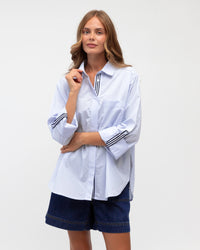 ∙ LOL70929 ∙ 100% Cotton ∙ S:M:L:XL=2:2:2:2 ∙ Collared neckline ∙ Long sleeve ∙ Side and cuff striped design ∙ Curved front back hem ∙ Side split ∙ Regular fit ∙ Our model is wearing size S