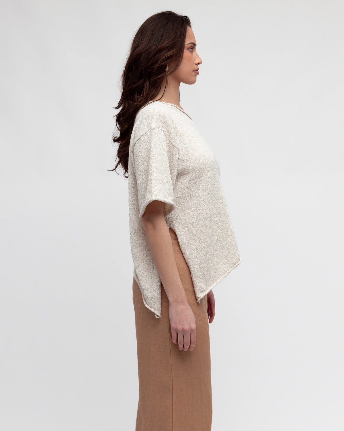 ASYMMETRICAL SHOULDER BOUCLE KNIT TOP