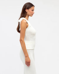 ∙ TF11119∙ Acrylic∙ 6:8:10:12:14=1:2:2:2:1∙ Asymmetric detail∙ Sleeveless∙ Tie-ups closure∙ Hip length∙ Slim fit∙ Our model is wearing size 8