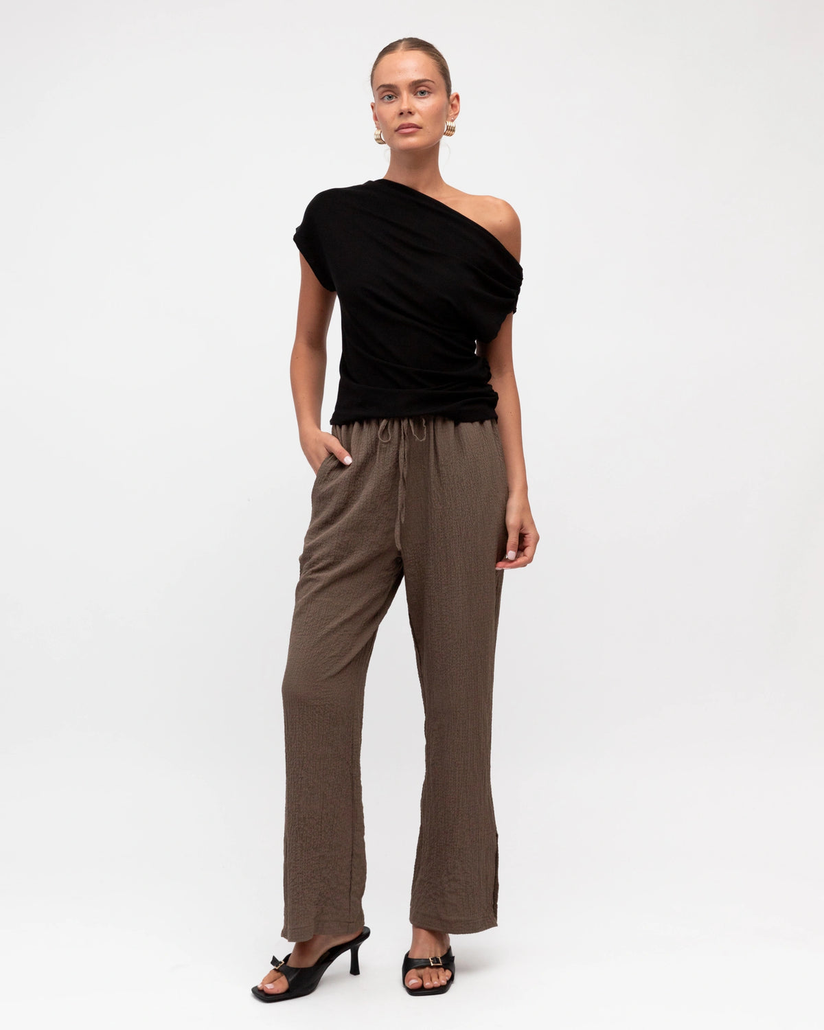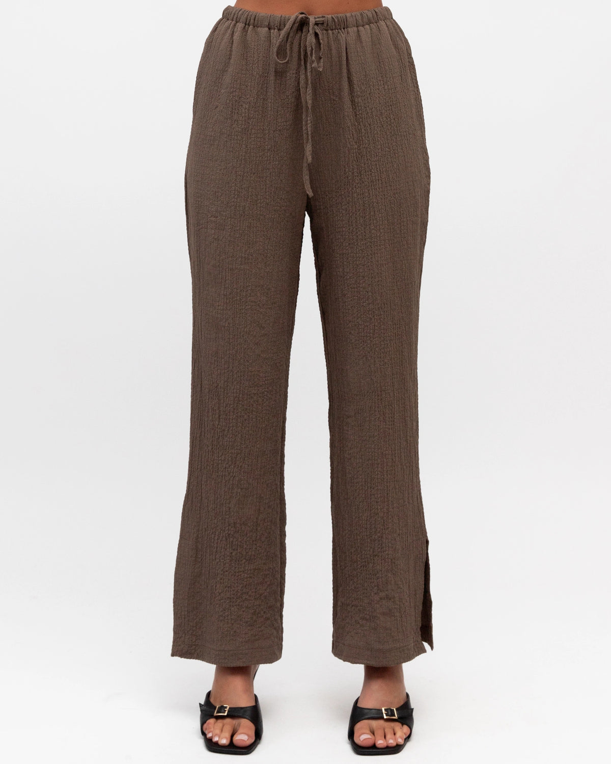 ∙ TF11696 ∙ Rayon ∙ 6:8:10:12:14=1:2:2:2:1 ∙ Mid rise ∙ Drawstring elastic waistband ∙ Side pockets ∙ Wide-legged ∙ Side split detail ∙ Full length ∙ Regular fit ∙ Our model is wearing size 8