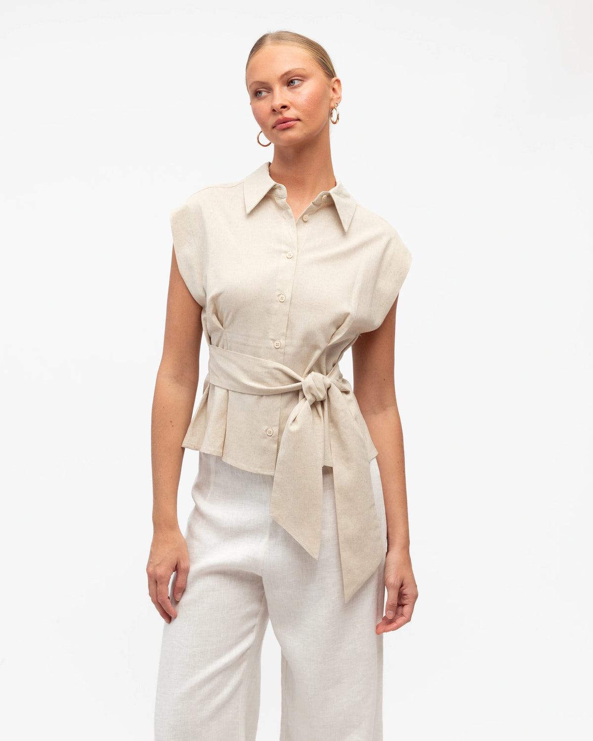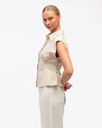 LINEN COLLARED TOP