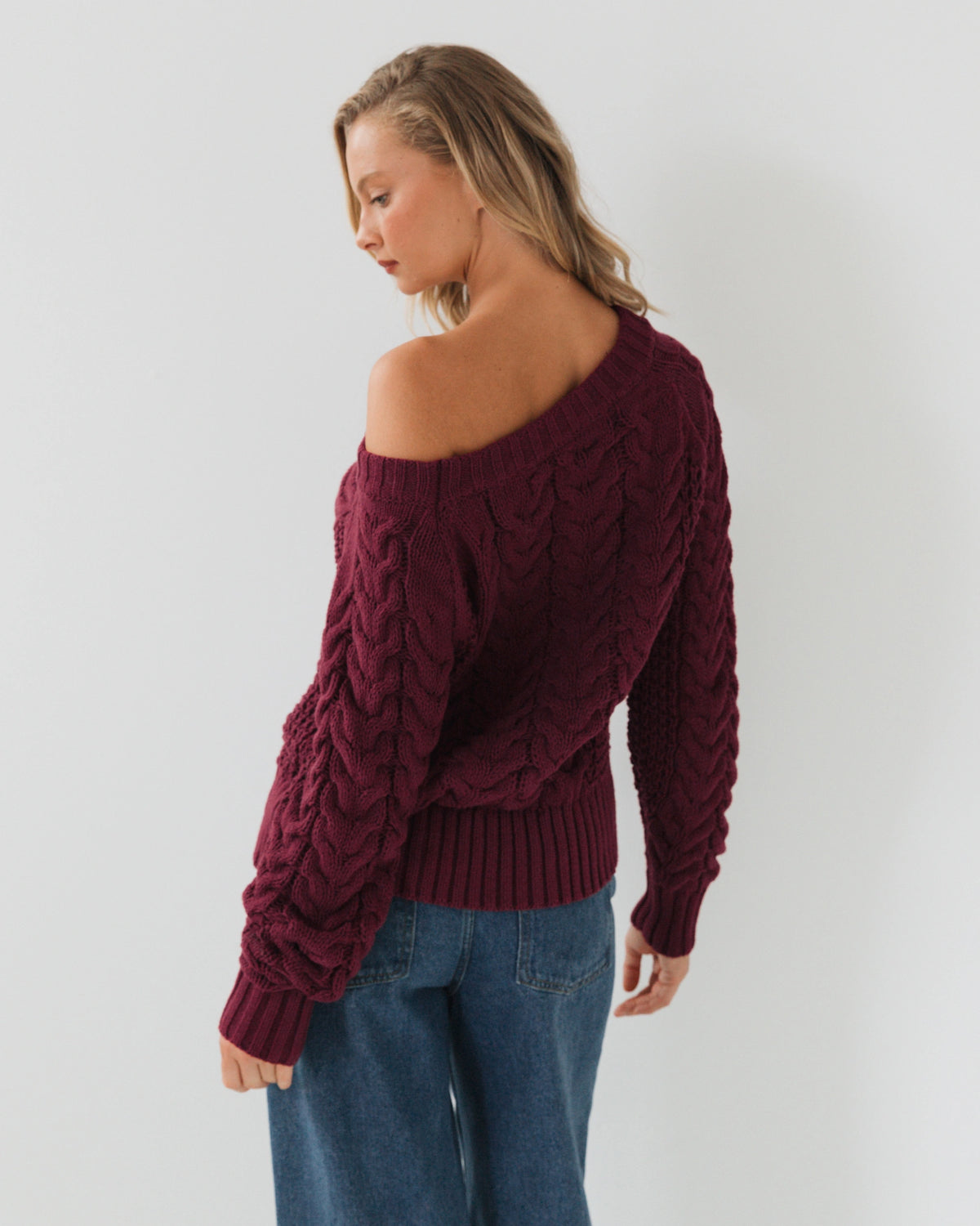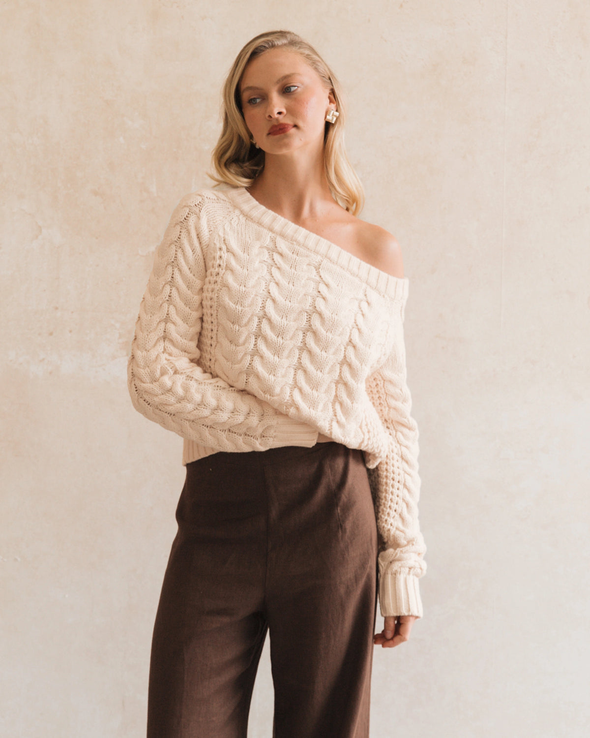 ONE SHOULDER CABLE KNIT TOP
