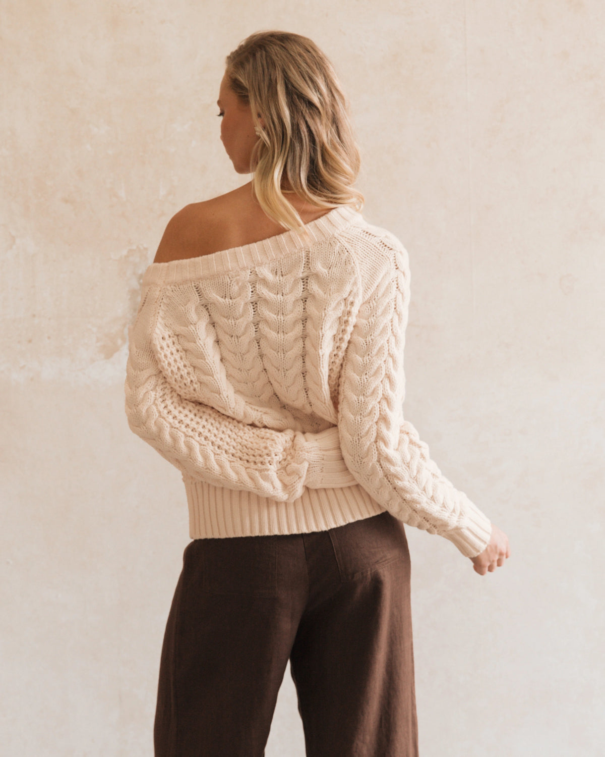 ∙ Chunky cable knit design