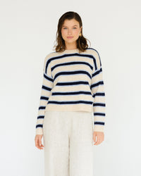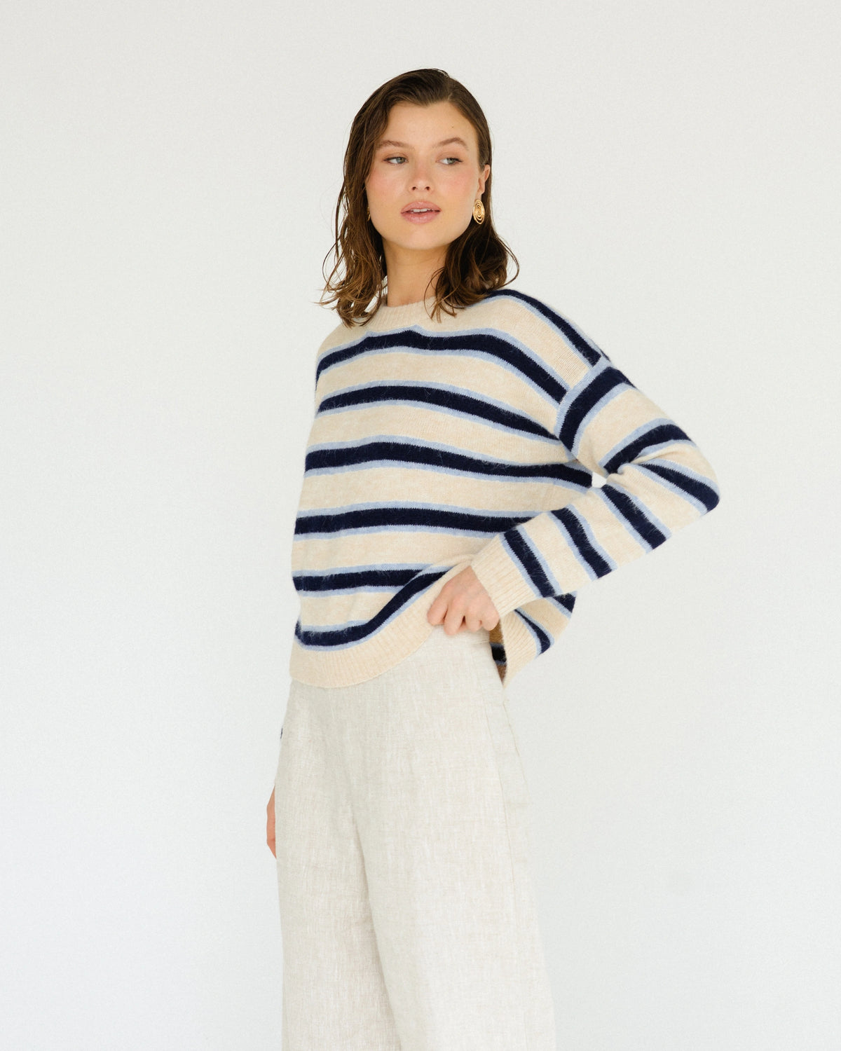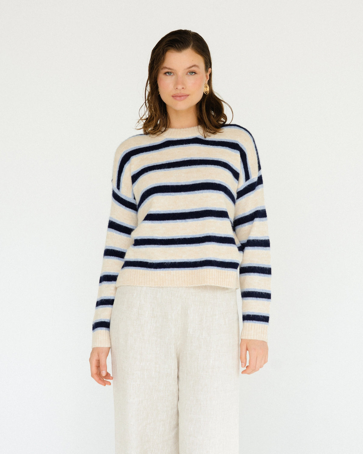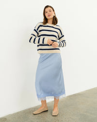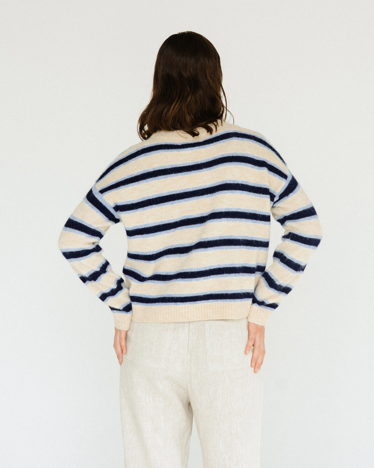 ∙ TF11678 ∙ Polyester ∙ XS:S:M:L=1:2:2:2 ∙ Crew neckline ∙ Long sleeves ∙ Contrast white blue stripe detail ∙ Straight hemline ∙ Regular fit ∙ Our model is wearing size S