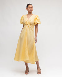 ∙ TFL8545-27 ∙ 6:8:10:12:14=1:2:2:2:1 ∙ 100% Linen ∙ V neck ∙ Balloon sleeves ∙ Twist front ∙ Zip at CB ∙ Fitted waistline ∙ Our model is wearing size 8