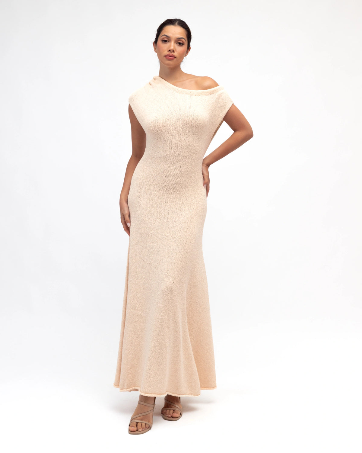 ∙ TF11011 ∙ Viscose ∙ XS:S:M:L=1:2:2:2 ∙ Asymmetrical neckline ∙ Off shoulder design ∙ Sleeveless ∙ Roll detail on hem ∙ Maxi length ∙ Slim fit ∙ Our model is wearing size S