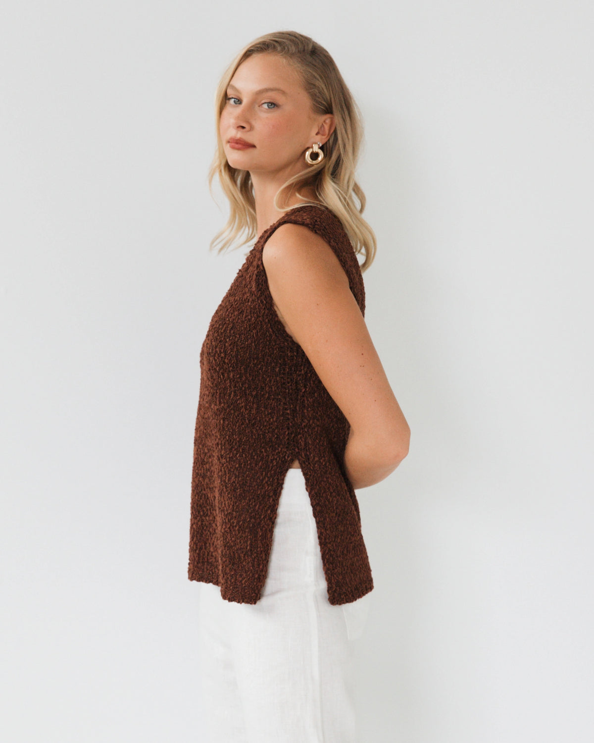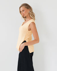 ∙ TF11571∙ Polyester∙ XS:S:M:L=1:2:2:2∙ V neckline∙ Sleeveless∙ Tubular finish hem∙ Split detail∙ Relaxed fit∙ Our model is wearing size S