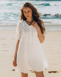 ∙ VV11475∙ 100% Cotton∙ 8:10:12:14:16=2:2:2:1:1∙ Collar neckline∙ Short sleeves with elasticated cuff∙ A-line silhouette detail∙ Button fastening∙ Mini length∙ Relaxed fit∙ Our model is wearing size 8