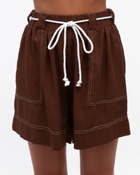 ∙ LOL70611 ∙ Rayon/Linen ∙ S:M:L:XL=2:2:2:2 ∙ High-waisted fit ∙ Elasticated waistband with cord ∙ Waistband with belt loops ∙ Contrast stitch detail ∙ Side pockets ∙ Regular fit ∙ Our model is wearing size S