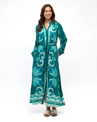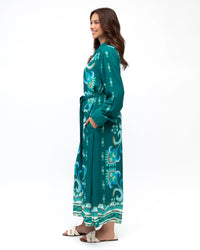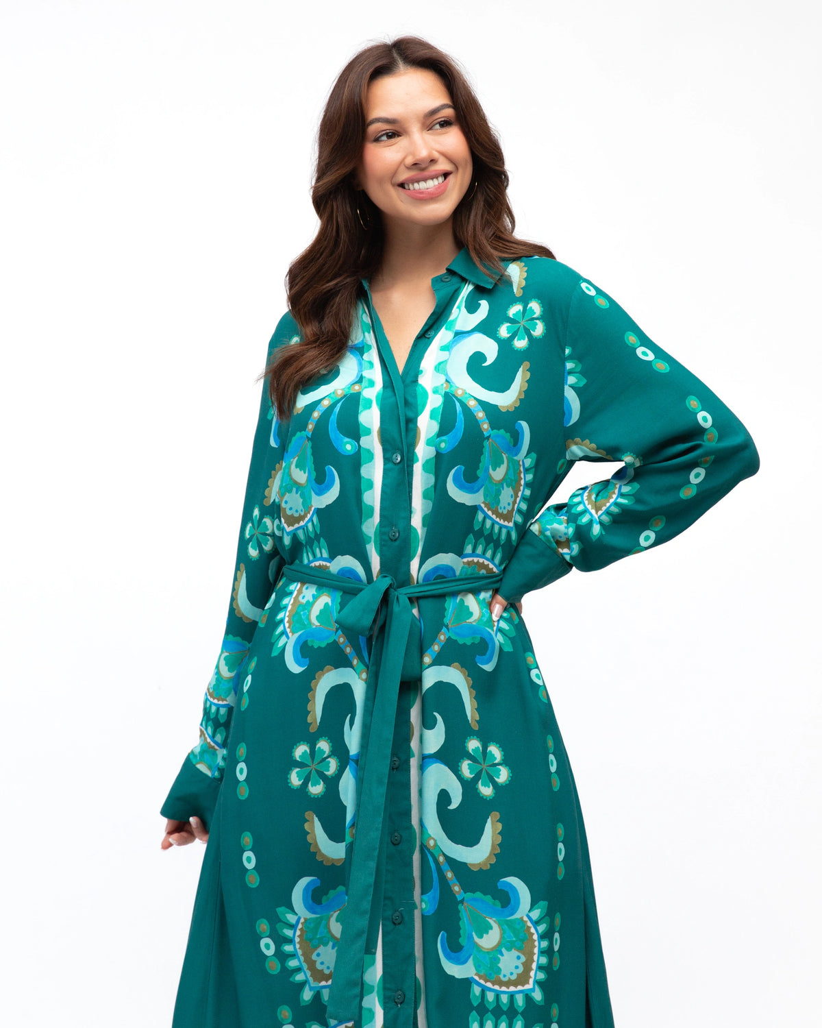 ∙ LOLE71067 ∙ Rayon ∙ S:M:L:XL:XXL=2:2:2:2:1 ∙ Exclusive print ∙ Collared neckline ∙ Long sleeves with button ∙ Button through front ∙ Tie at waist ∙ Side pockets ∙ Maxi length ∙ Regular fit ∙ Our model is wearing size S