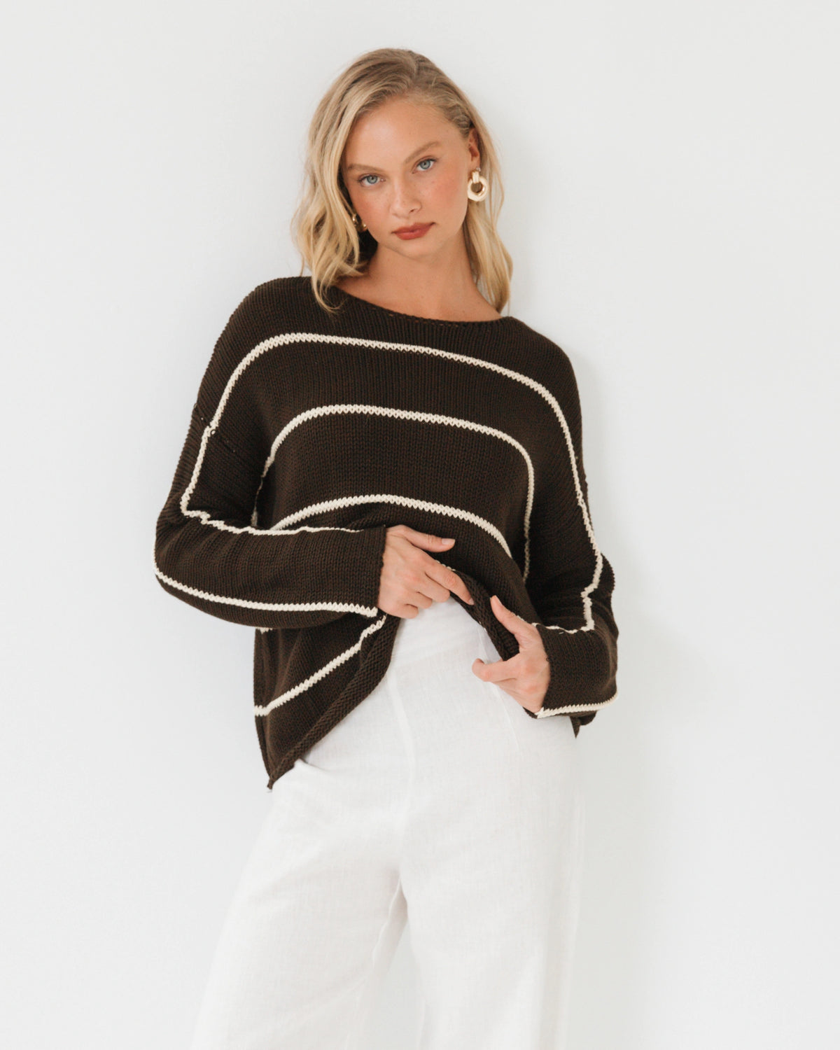 ∙ TF11751 ∙ 100% Cotton ∙ XS:S:M:L=1:2:2:2 ∙ Round neck ∙ Long sleeve ∙ Drop shoulders design ∙ Stripe print ∙ Oversized fit ∙ Our model is wearing size S