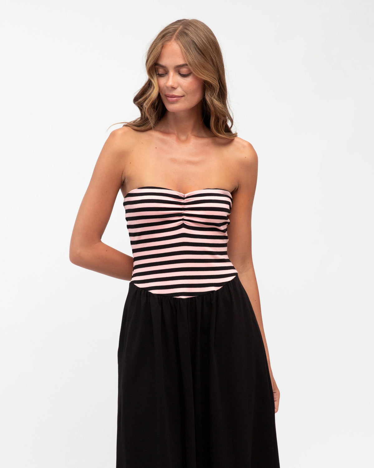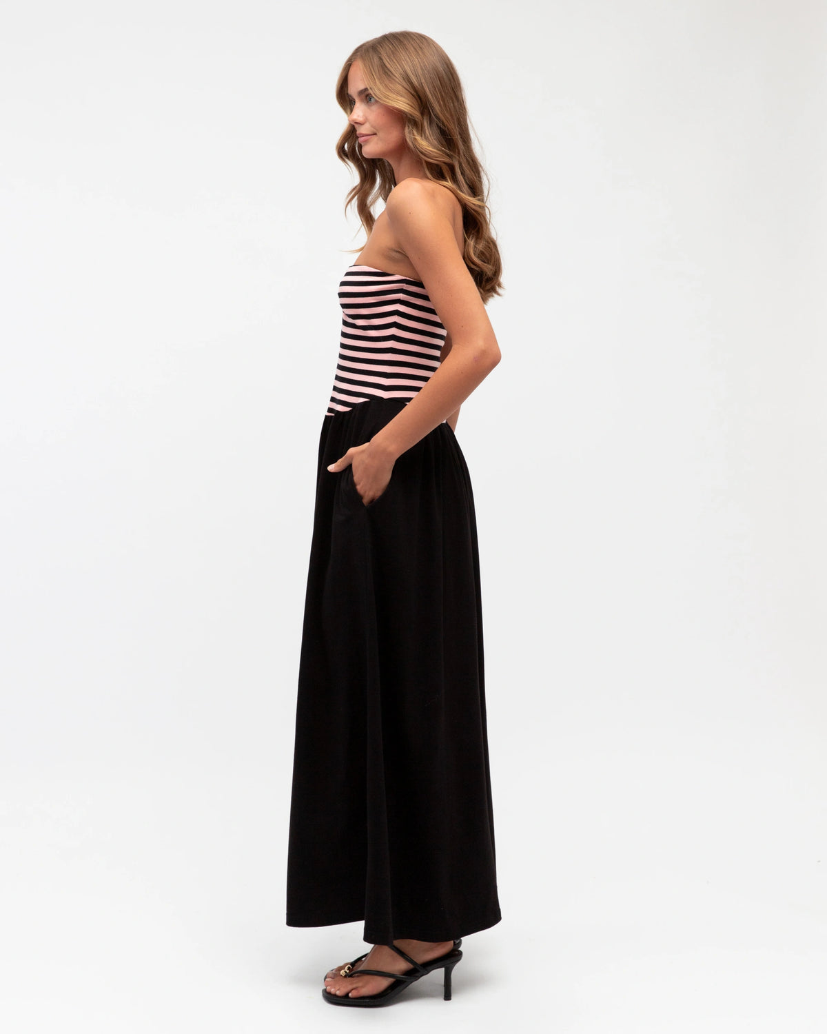 ∙ VV11563∙ Polyester∙ 8:10:12:14:16=2:2:2:1:1∙ Sweetheart neckline∙ Elastic waistband∙ Strapless∙ Stretchy bodice style∙ Side pockets∙ Midi length∙ Relaxed fit∙ Our model is wearing size 8