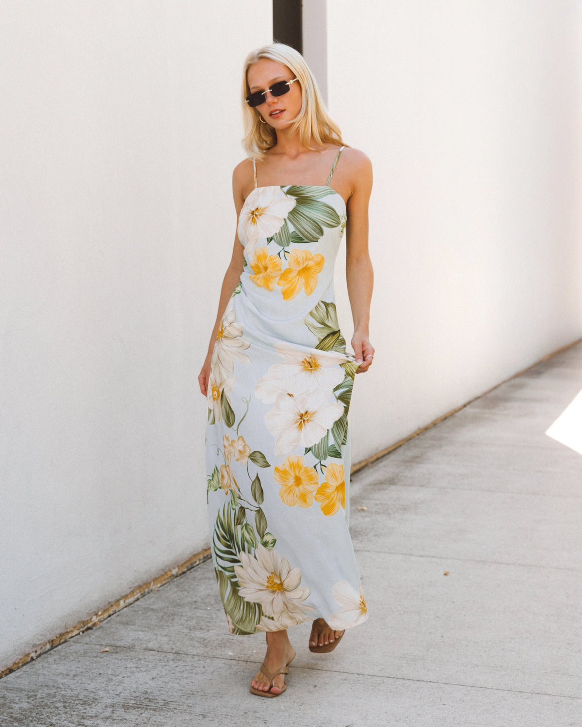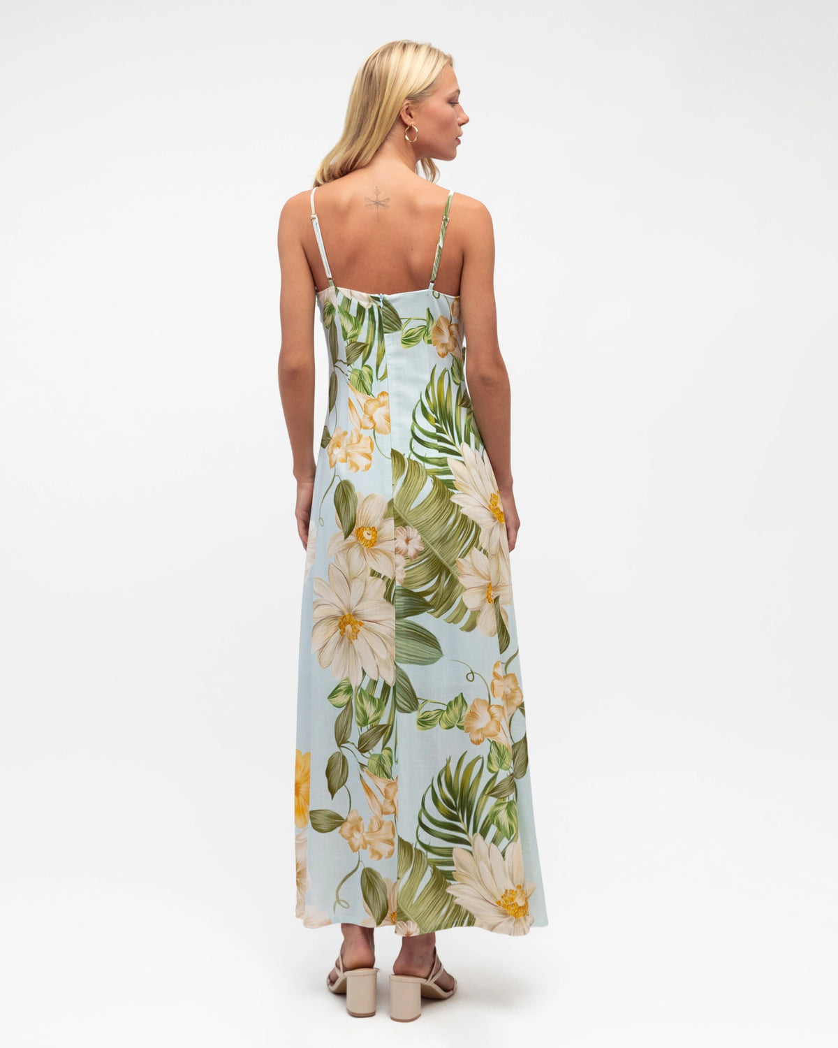∙ TFE11539∙ Rayon/Linen∙ 6:8:10:12:14=1:2:2:2:1∙ Exclusive print∙ Square neckline∙ Thin adjustable straps∙ CB zipper design∙ Side gather details∙ Full lined∙ Maxi length∙ Relaxed fit∙ Our model is wearing size 8