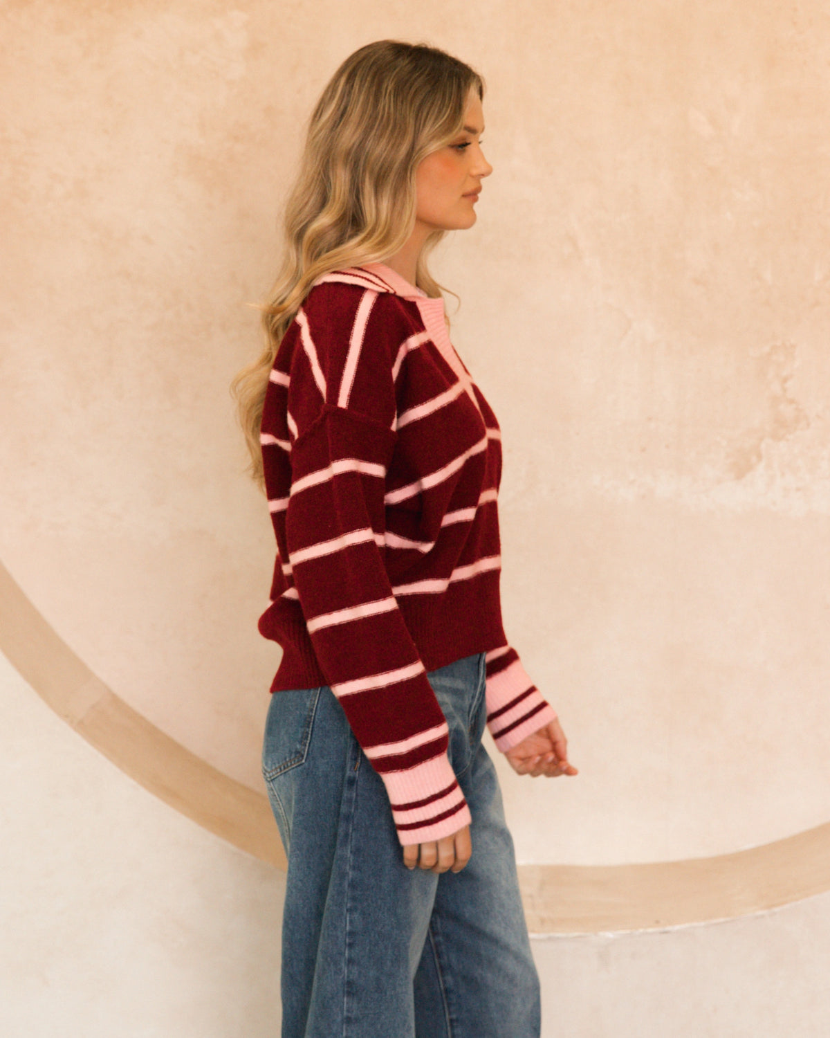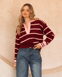 ∙ VV11879 ∙ Polyester ∙ XS:S:M:L=1:3:2:2 ∙ Collared neckline ∙ Long sleeves ∙ Contrast ribbed hem ∙ Stripe detail ∙ Ribbed neckline, cuffs, and hem ∙ Pull on style ∙ Relaxed fit ∙ Our model is wearing size S