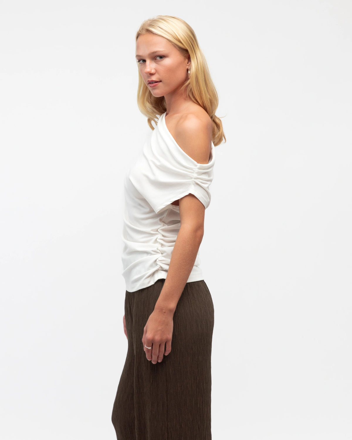∙ TF11517 ∙ Jersey ∙ 6:8:10:12:14=1:2:2:2:1 ∙ Off shoulder neckline ∙ Short sleeves ∙ Asymmetric hem ∙ Ruching detail ∙ Regular fit ∙ Our model is wearing size 8