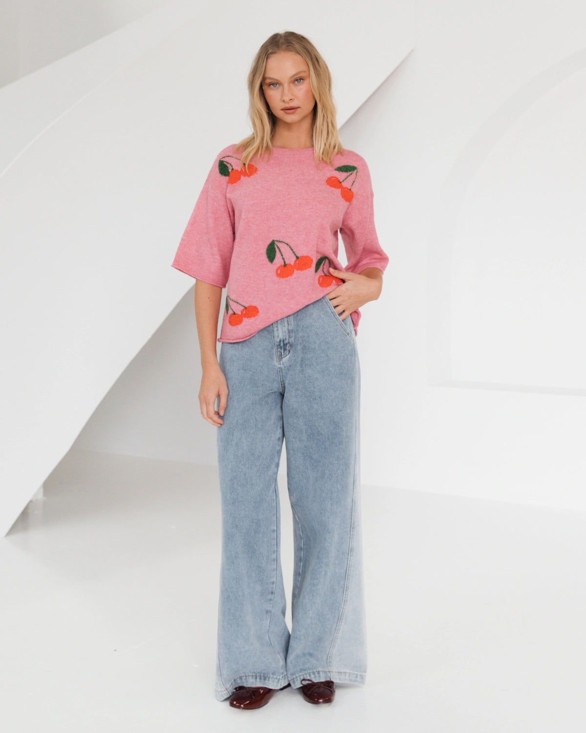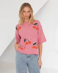 ∙ PH13283∙ Acrylic∙ S:M:L=3:2:2∙ Crew neck∙ Half sleeve∙ Drop shoulder detail∙ Strawberry graphic details∙ Pull-on style∙ Relaxed fit∙ Our model is wearing size S