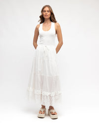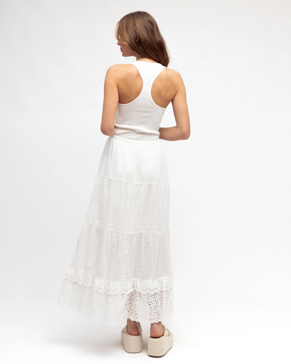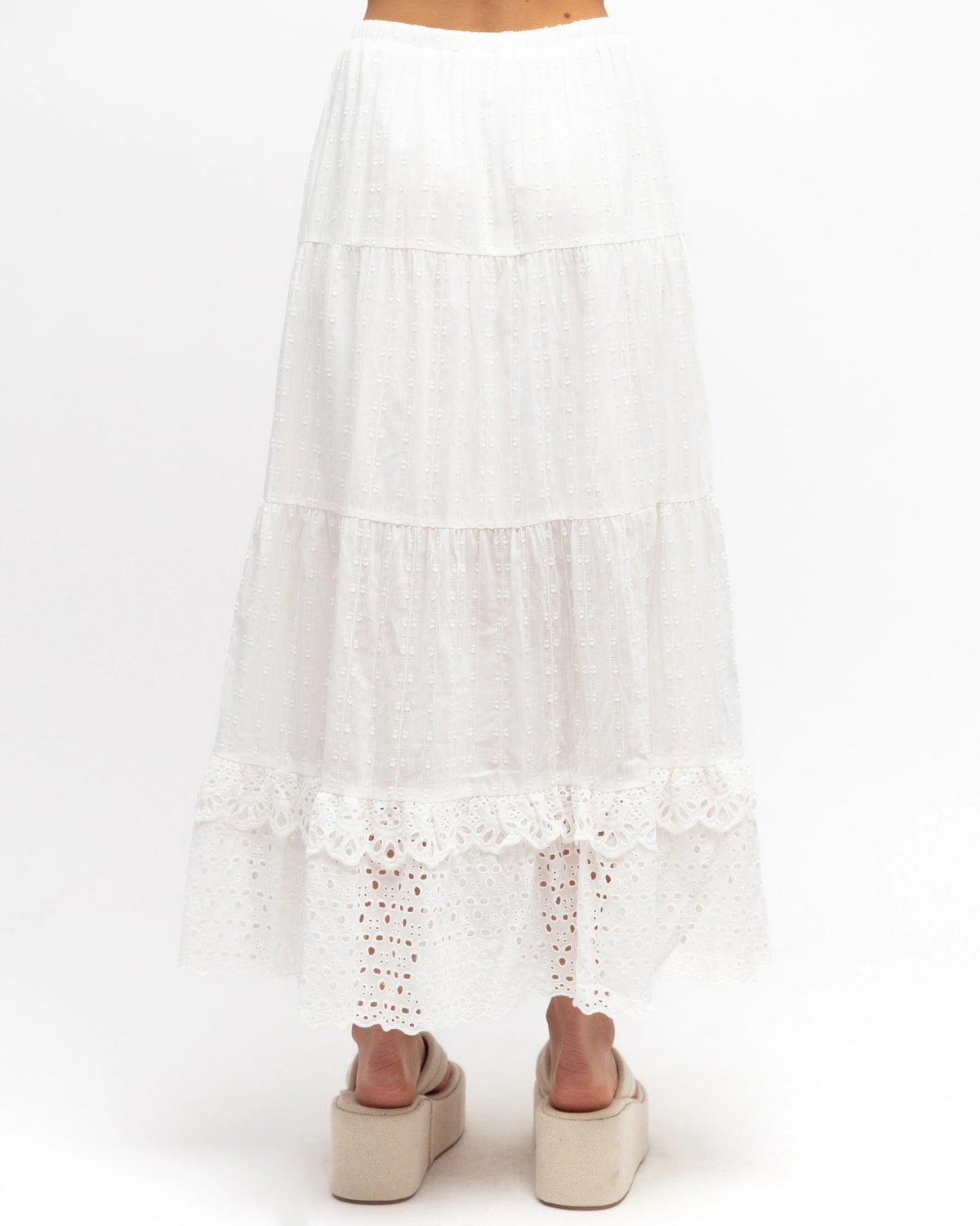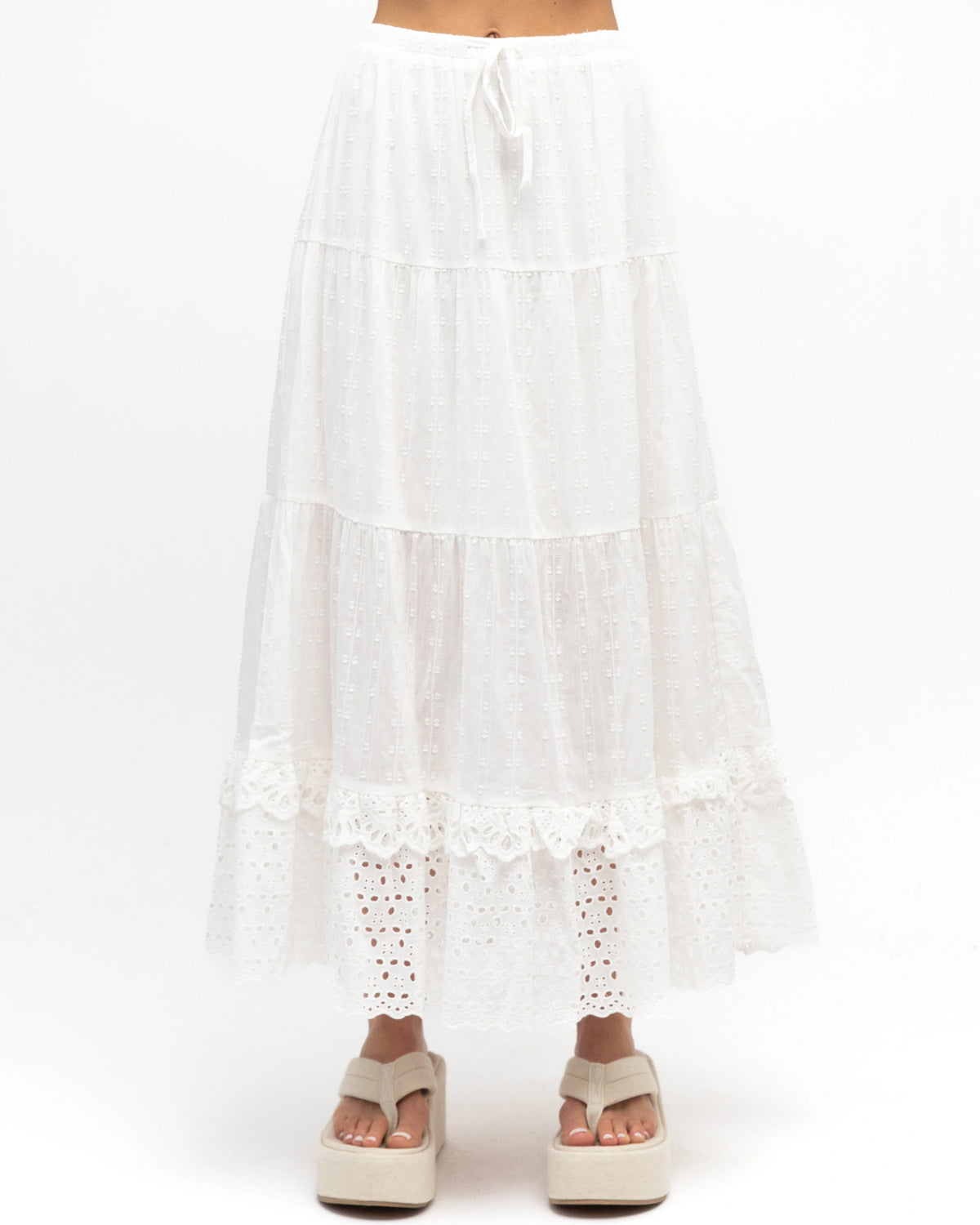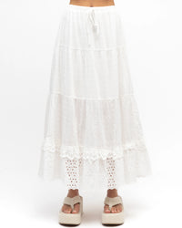 ∙ PH12812∙ 100% Cotton∙ 6:8:10:12:14=1:2:2:2:1∙ Elastic waistband with self tie ∙ Partially lined∙ Broderie anglaise detail∙ Midi length∙ Relaxed Fit∙ Our model is wearing size 8